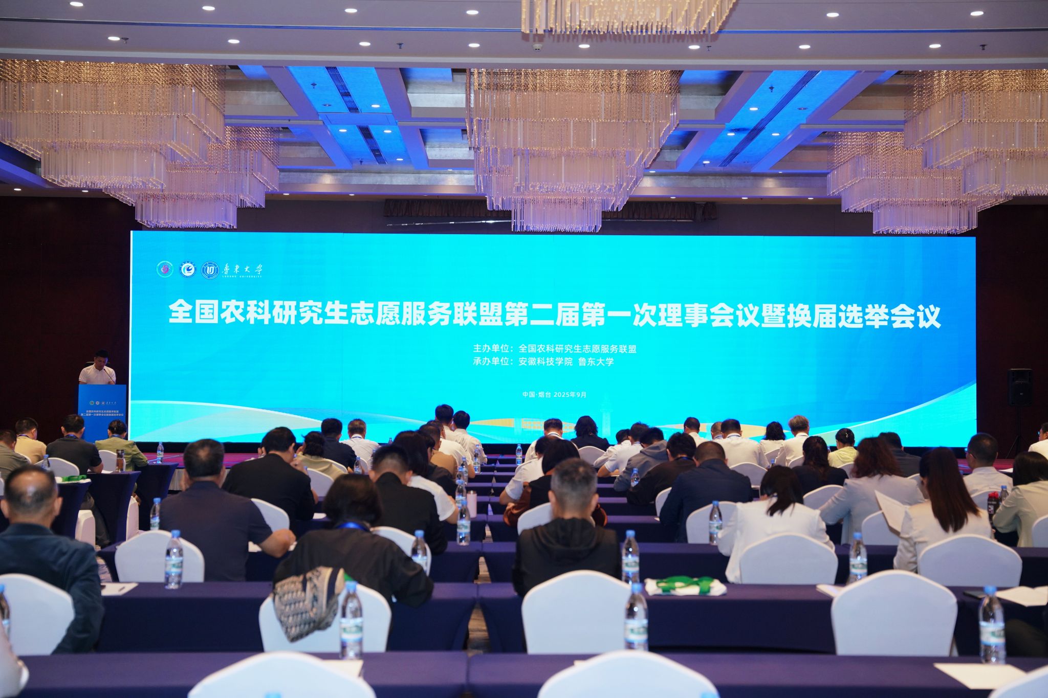 9月18日至19日,全国农科研究生志愿服务联盟第二届第一次理事会暨换届选举会议在山东烟台召开。本次会议由安徽科技学院与鲁东大学联合承办。中国学位与研究生教育学会农林学科工作委员会主任委员、中国农业大学研究生院常务副院长郭鑫,农林学科工作委员会秘书长、中国农业大学党委研究生工作部部长、研究生院副院长马紫威,联盟第一届理事会秘书长、安徽科技学院党委副书记、院长李升和以及来自近100所兄弟高校的各位领导及代表参加会议。安徽科技学院党委委员、副院长王孝义主持会议。