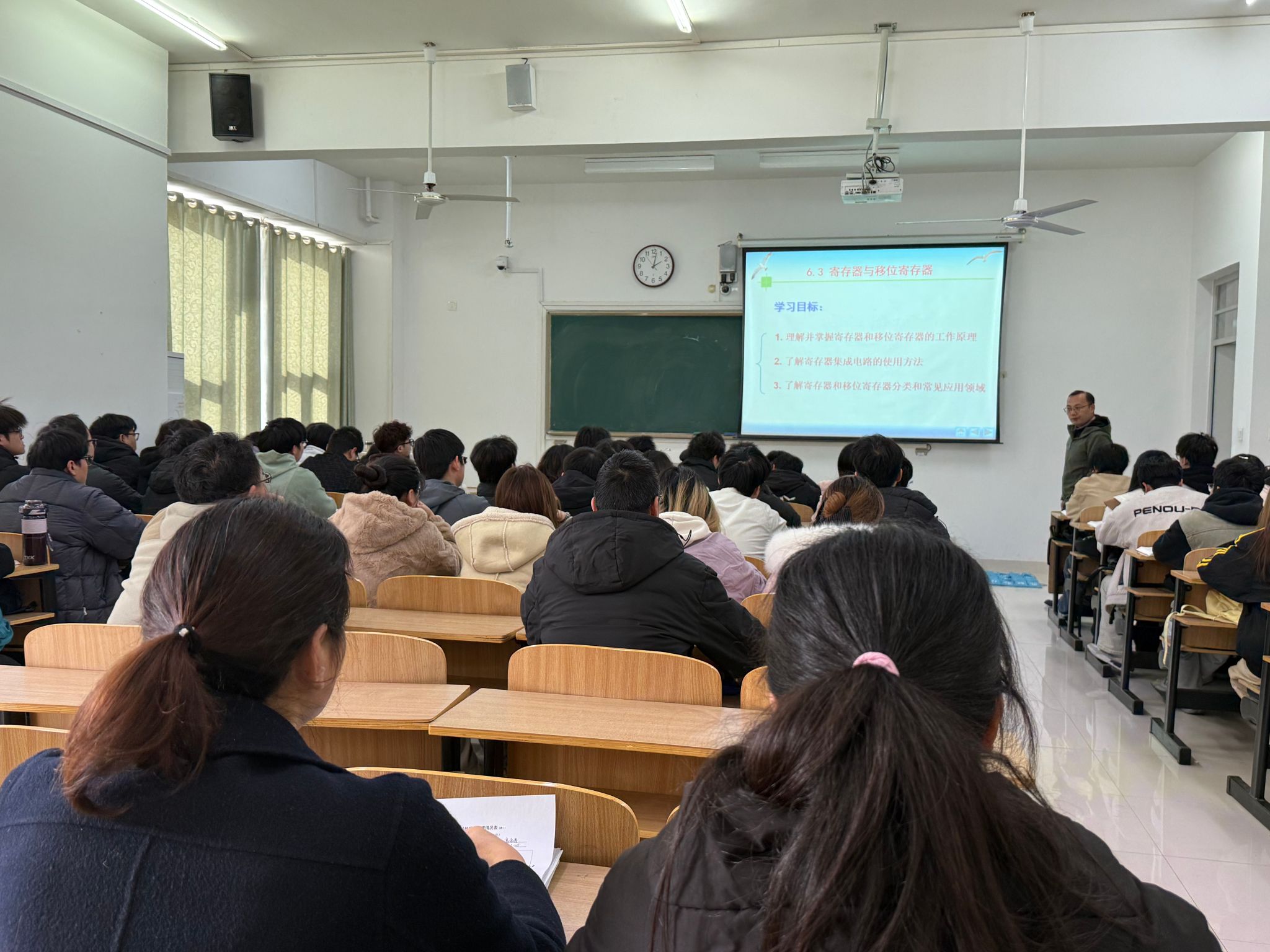 11月27日下午,我校“精彩一课”系列活动之名师讲堂(十):高海涛教授讲《数字电路》在致知楼A305开讲。活动由督导考核办公室牵头,信息与网络工程学院承办。信息与网络工程学院副院长曹浩及全体青年教师参与现场观摩学习,督导考核办公室通过腾讯会议同步直播和录播。