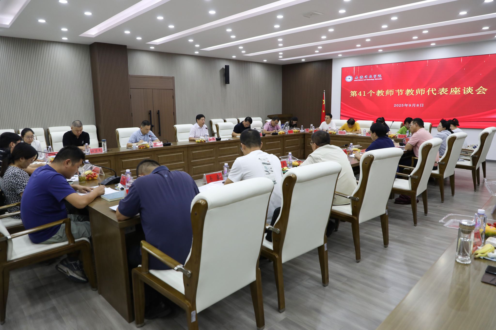 9月8日下午,我校在凤阳校区图书馆B二楼多功能厅举行第41个教师节教师代表座谈会。党委书记时伟,党委副书记、院长李升和,党委委员、副院长方鸣出席座谈会。来自全校各教学单位的19名优秀教师代表参加座谈会。座谈会由方鸣主持。