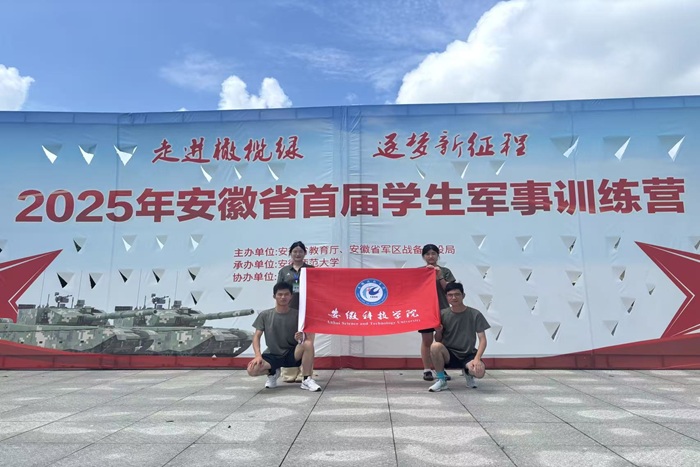 7月6日至12日,由安徽省教育厅、安徽省军区战建局联合举办的安徽省首届学生军事训练营在芜湖某训练基地举行。我校遴选的2023级3名同学组建的代表队表现突出,训练成绩总积分排名全省42所本科院校第四名,在轻武器射击科目考核中更是勇夺第一,我校两名学子获得“优秀营员”称号,将与其他三所高校的6名同学代表安徽省参加在青岛举办的全国军事训练营活动。