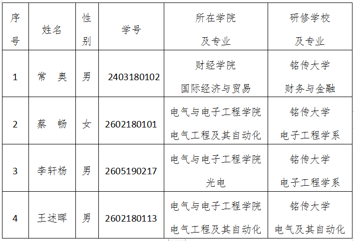 关于2020年秋季学期赴台研修初步人选的公示