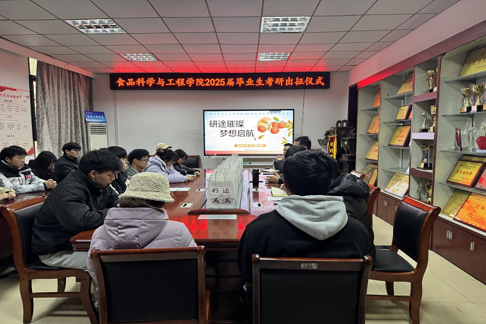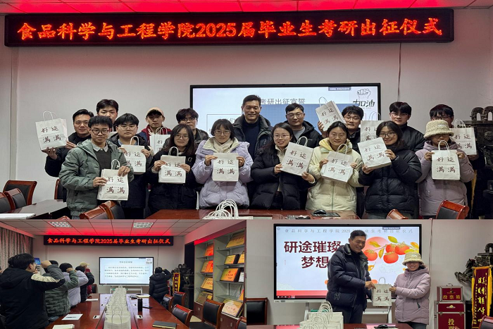 12月16日下午,食品科学与工程学院在学院会议室举行考研出征仪式。学院党委书记付光玺出席仪式并作动员讲话。学院有关教师和2025届考研学生代表参加。