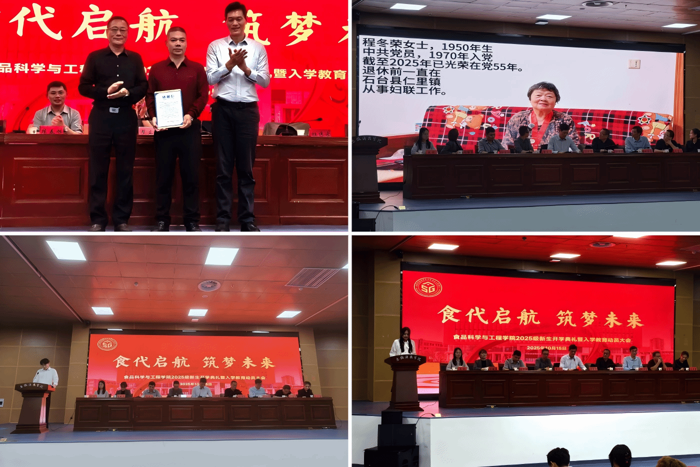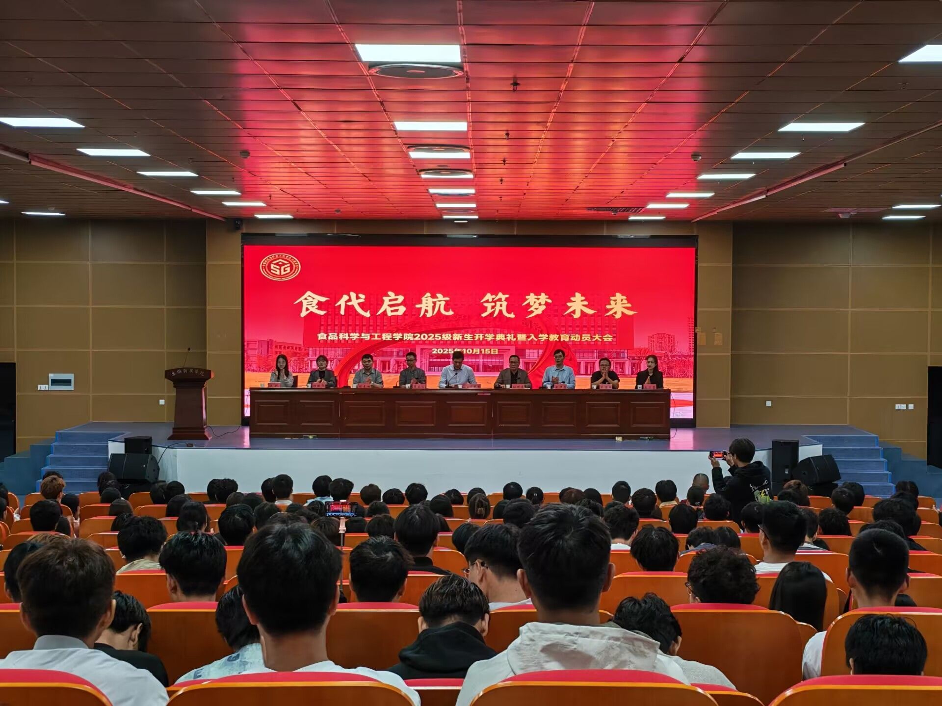为帮助2025级新生明确学业发展方向,筑牢成长成才根基,10月15日,食品科学与工程学院在图书馆二楼报告厅顺利举办2025级新生开学典礼暨入学教育动员大会。学院党政领导出席会议,各系主任、教师代表、全体辅导员与2025级全体新生及家长代表参会。会议由学院党委书记付光玺主持。