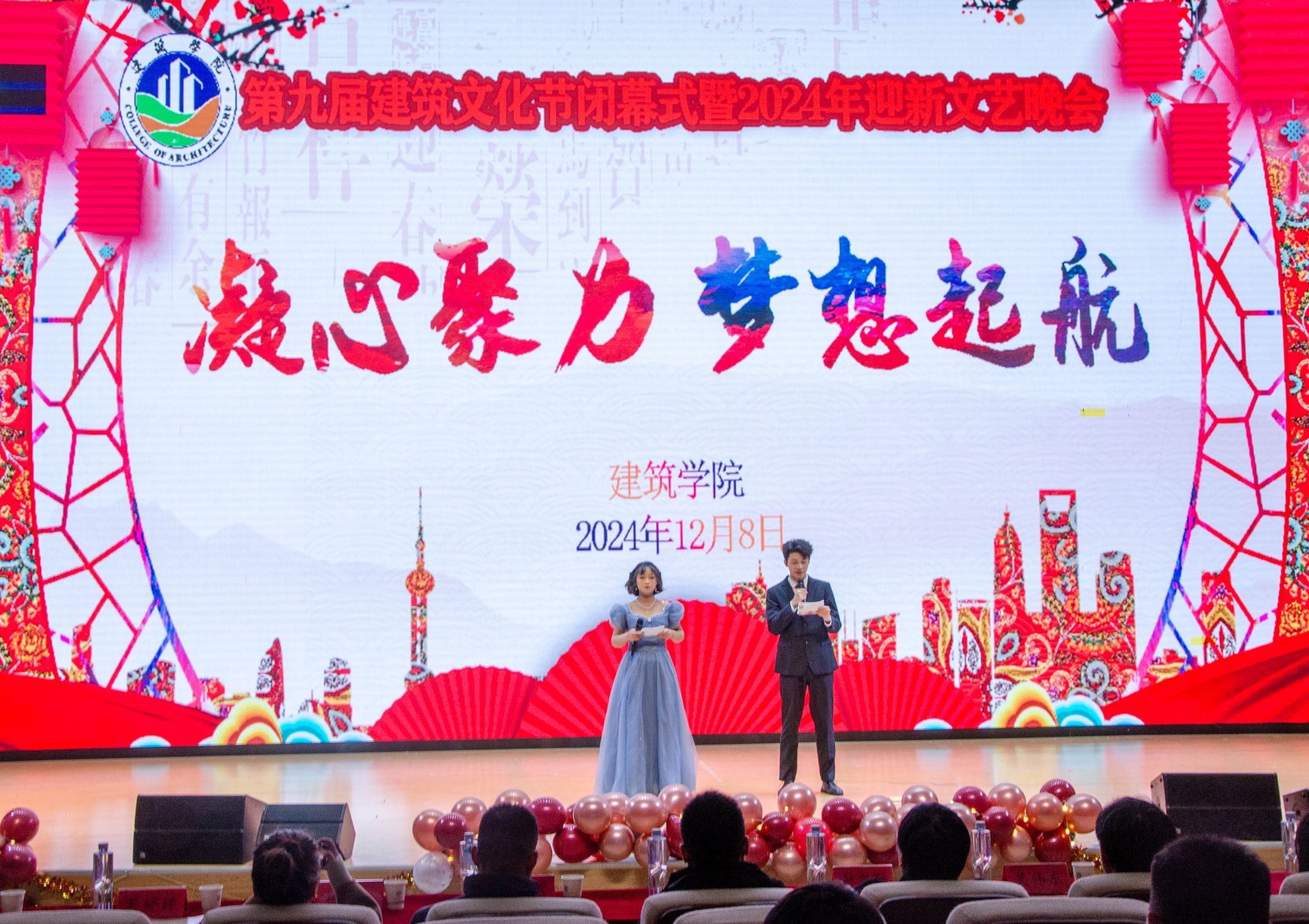 12月8日晚,建筑学院在“一站式”学生社区活动中心成功举办第九届建筑文化节闭幕式暨2024年迎新文艺晚会。学院党政领导、全体辅导员、教师代表、龙湖校区兄弟学院部分老师,以及学院2023、2024级全体学生参加闭幕式,并全程观看了晚会。