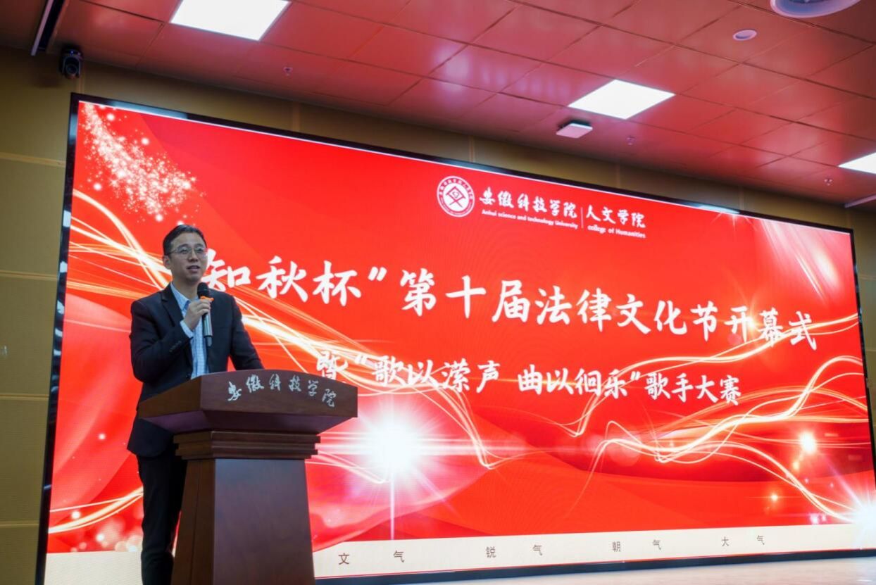 宫鉴在致辞中表示,法律文化节是安科菁菁学子充分展现自我和传播法治文化的重要舞台,见证了众多学子的成长和进步,已经成为人文学院乃至安徽科技学院的一张靓丽文化名片;安徽知秋律师事务所将与人文学院在多领域持续深化合作,共同推动学院法律文化建设的繁荣发展。