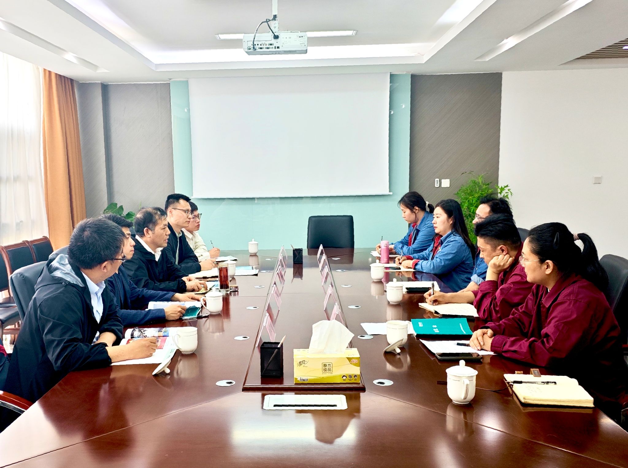 公司党委书记、总经理李平代表公司向黄树桥一行表示欢迎,并介绍了公司基本情况和发展规划,分享了生产实践中遇到的技术瓶颈与创新需求,期待通过整合高校科研资源与企业生产优势,加速科研成果转化,推动企业技术革新。黄树桥代表学院对公司的热情接待表示感谢,并介绍了学校和学院发展近况和取得的成绩。他表示,希望以此次调研为契机,优化学院人才培养方案,强化校企协同育人机制,培养更契合行业需求的高素质应用型人才。企业各部门负责人从行业用人标准出发,结合专业发展趋势,围绕提升学生工程实践能力与创新思维培养,对专业课程设置和实践教学环节提出很多有益的意见和建议。