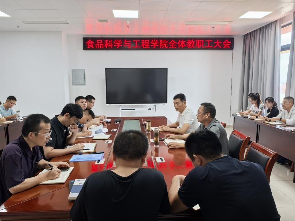 为总结暑期工作,谋划布置新学期工作,8月31日下午,食品科学与工程学院在学院会议室召开期初全体教职工大会,学院党政领导、全体教职工参加会议。会议由学院党委书记付光玺主持。
