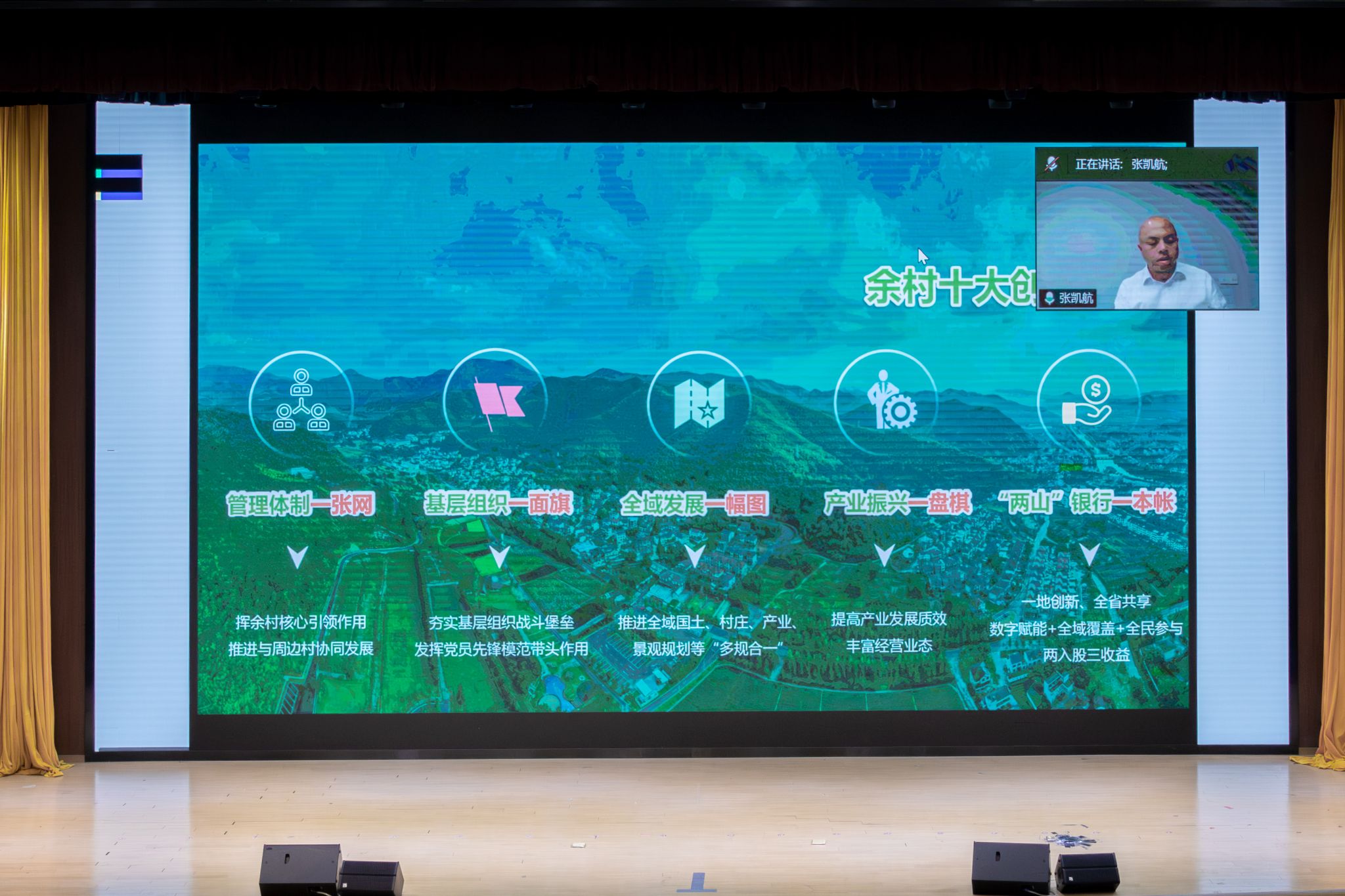 本次报告会邀请到现任十四届全国人大代表、浙江省湖州市安吉余村省级旅游度假区党工委副书记、管委会副主任、余村村党支部书记、村民委员会主任汪玉成。他以“学习贯彻习近平生态文明思想”为主题,用余村的生动实践深刻阐释了“绿水青山就是金山银山”的科学理念。