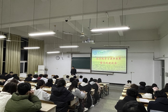 11月21日,农学院召开学习进步表彰大会暨学风建设会。农学院党委副书记张轶辉出席并讲话,有关教师、22-24级学习委员和班长参加会议。