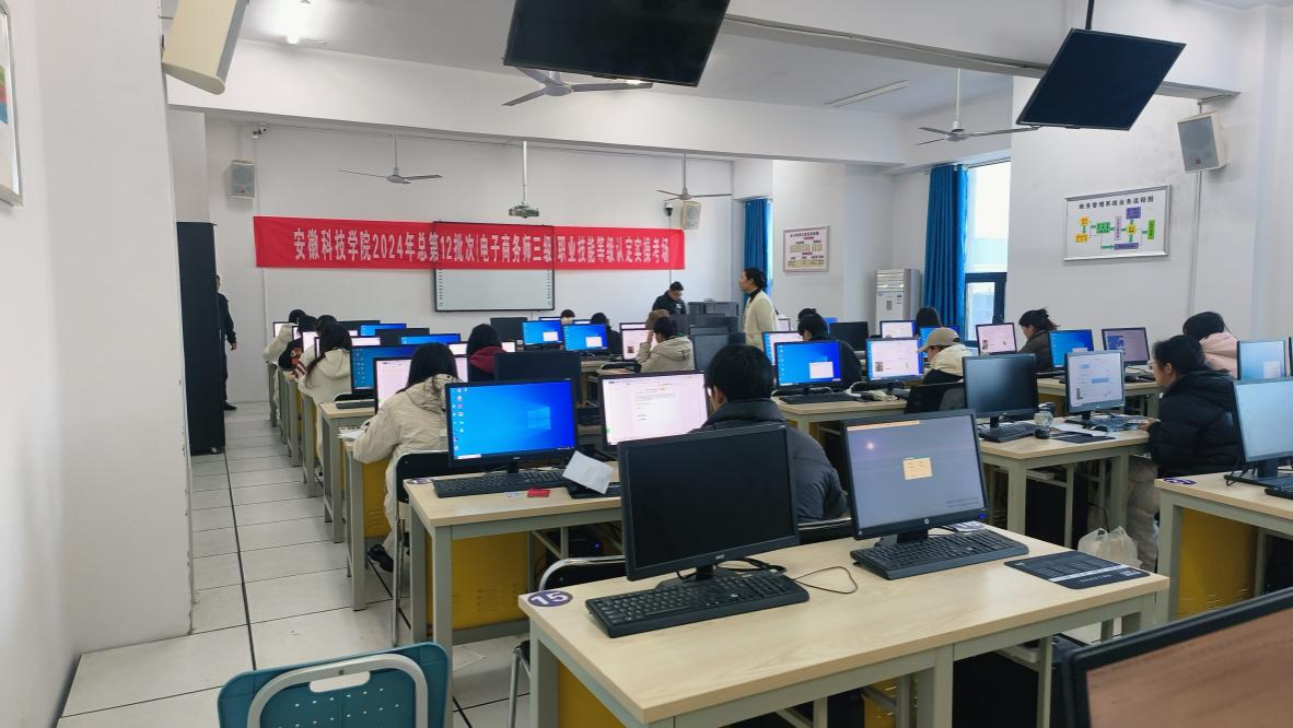 11月27日下午,电子商务师(三级)技能认定工作在财经学院进行。凤阳县人力资源和社会保障局科长王伟一行三人到现场督查指导。