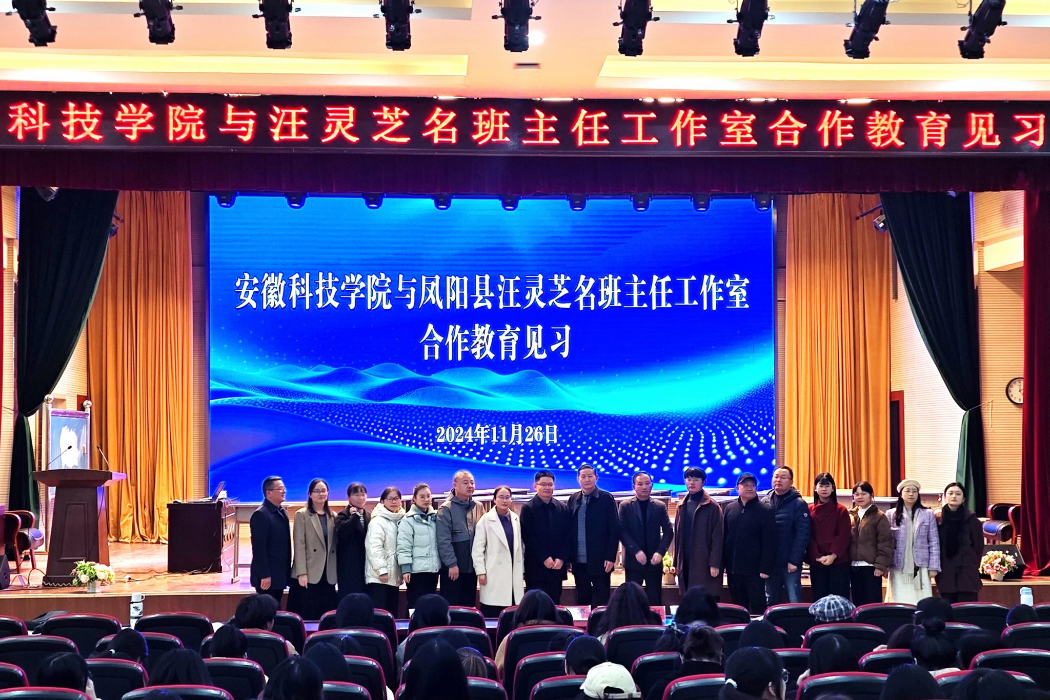 11月26日,人文学院与凤阳三中“凤阳县汪灵芝名班主任工作室”合作开展汉语言文学专业2023级教育见习。人文学院副院长牛永辉,凤阳三中校长李吉宏,汪灵芝名班主任工作室全体成员,中文系教育见习指导教师胡春艳、曹宋艳以及汉语言文学专业2023级全体学生参加活动。