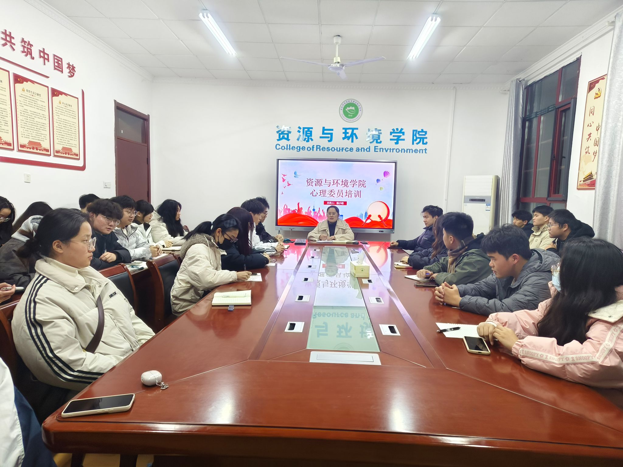 为扎实推进学院心理健康教育工作,切实提升育人水平。12月5日晚,资源与环境学院在学院会议室召开期末心理工作会议,学院各班级心理委员参加会议,会议由心理辅导老师杨小晗主持。