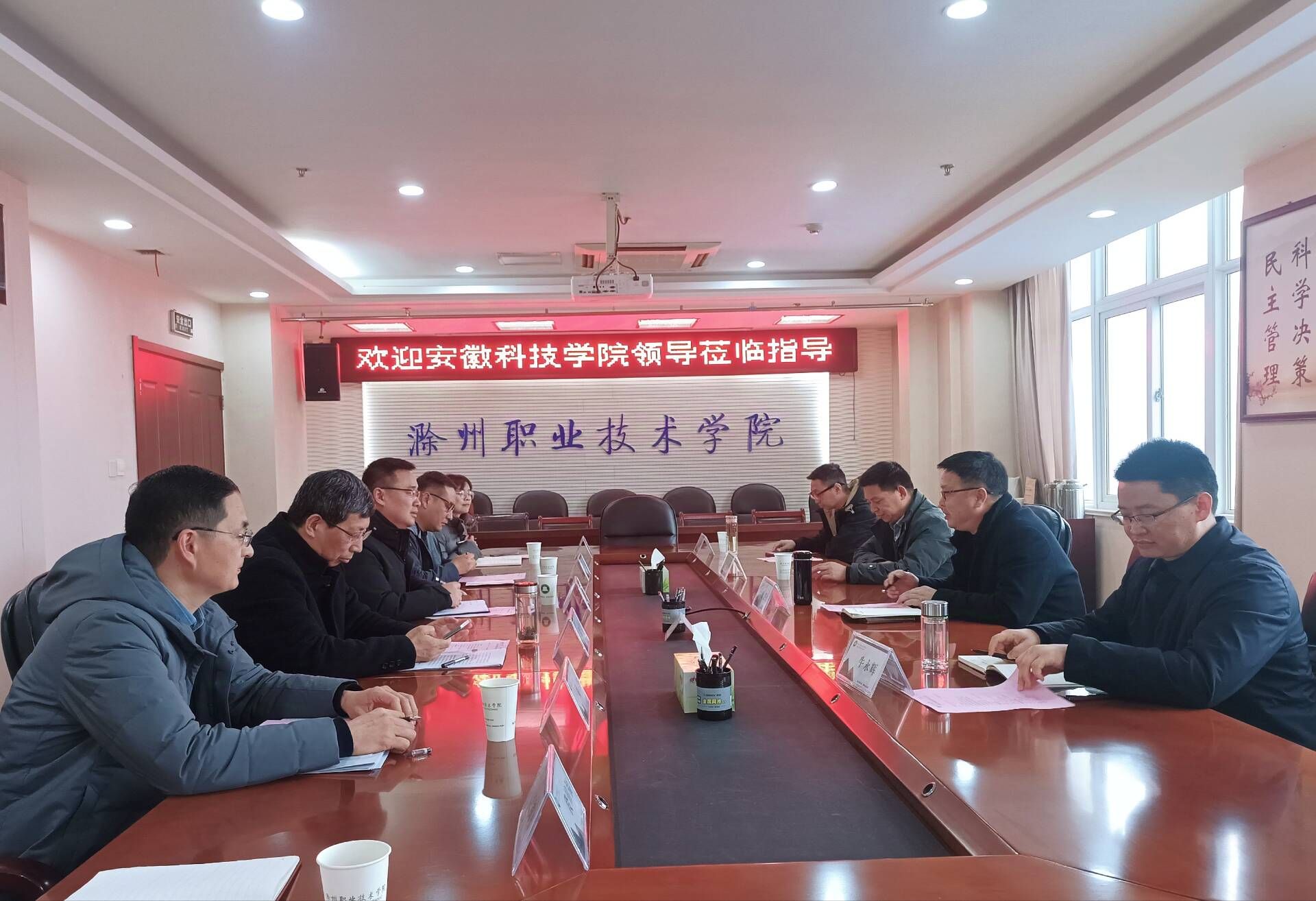 3月5日下午,教务处副处长舒英杰,智能制造学院副院长张华,人文学院副院长牛永辉,食品科学与工程学院副院长翟立公等四人组成的调研团前往滁州职业技术学院开展调研活动,受到了滁州职业技术学院教务处处长唐义武,电气工程学院院长张信群,基础教学部主任刘杰,食品与环境工程学院副院长孟飞,实验实训中心副主任殷德莉等的热情接待。