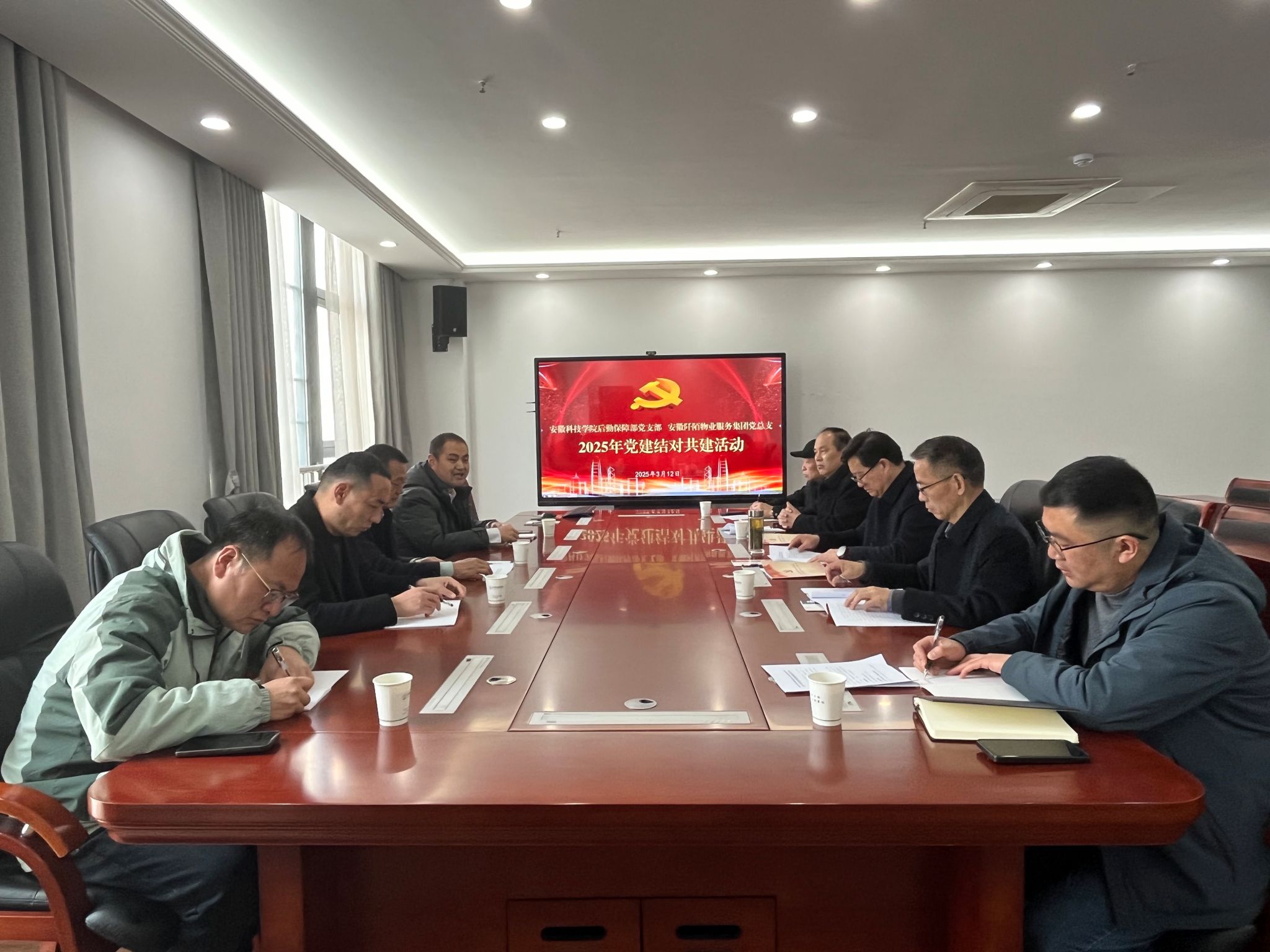 为推动党建工作与校园服务深度融合,3月12日上午,后勤保障部党支部与安徽阡陌物业服务集团有限公司党总支在龙湖校区开展了校企党建结对共建活动。后勤保障部党支部支委委员、有关科室负责人,阡陌物业集团党总支书记、专职副书记,及部门党员同志一起参与共建活动。