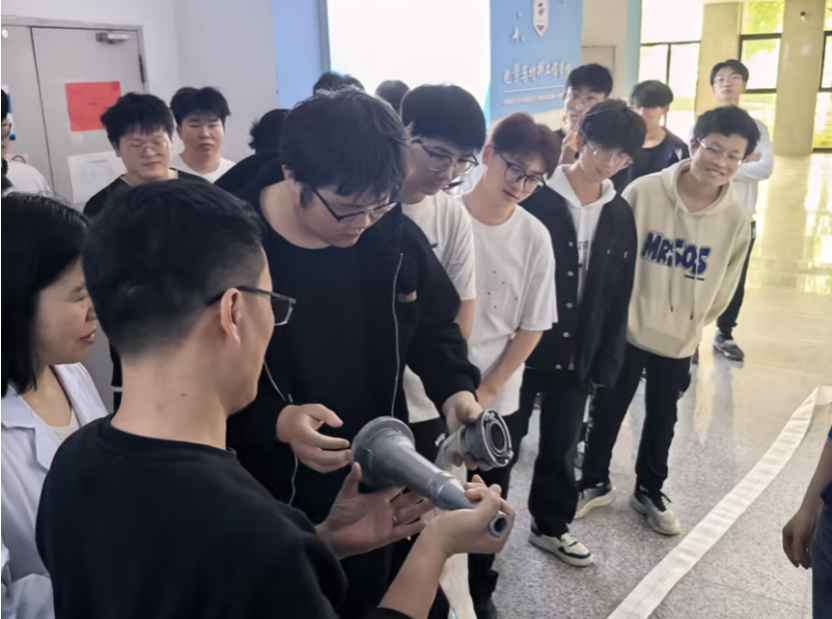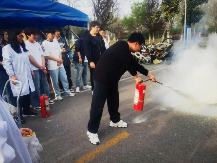 实操训练环节,师生们在保卫处工作人员的指导下,分组进行灭火器实操练习。工作人员针对实验室常见的固体火灾、液体火灾和气体火灾等不同类型火情,分别介绍了干粉灭火器、二氧化碳灭火器等的适用范围及操作差异,并指导同学们通过反复练习熟练掌握了“拔保险销——握喷管——压把手”的规范动作,还让同学们亲自体验了扑灭模拟火源的过程。