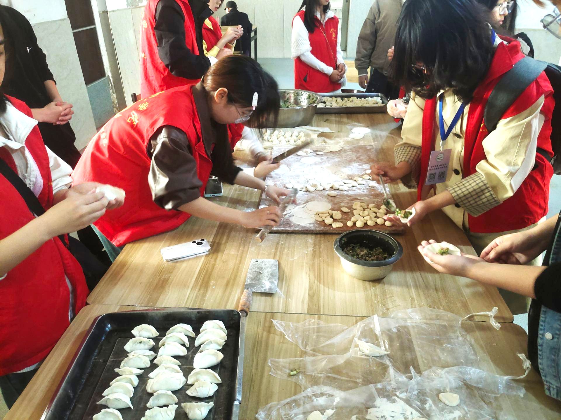 活动当日,志愿者一行受到乐孝园老年公寓院长夏志和等人的热情欢迎,夏志和向志愿者们表示感谢,肯定了学院连续三年坚持在敬老院开展志愿服务活动。随后,志愿者们在工作人员的陪同下,开始在敬老院食堂开展包饺子活动,和面、擀皮、调馅、包捏,分工协作、动作娴熟,现场气氛热烈,老人们也被这份热情感染,纷纷加入包饺子的队伍,手把手教志愿者捏褶子、封口,欢声笑语间,一盘盘形态各异、饱含心意的饺子很快摆满了桌面,小小的饺子包裹着浓浓的温情,食堂里欢声笑语不断。