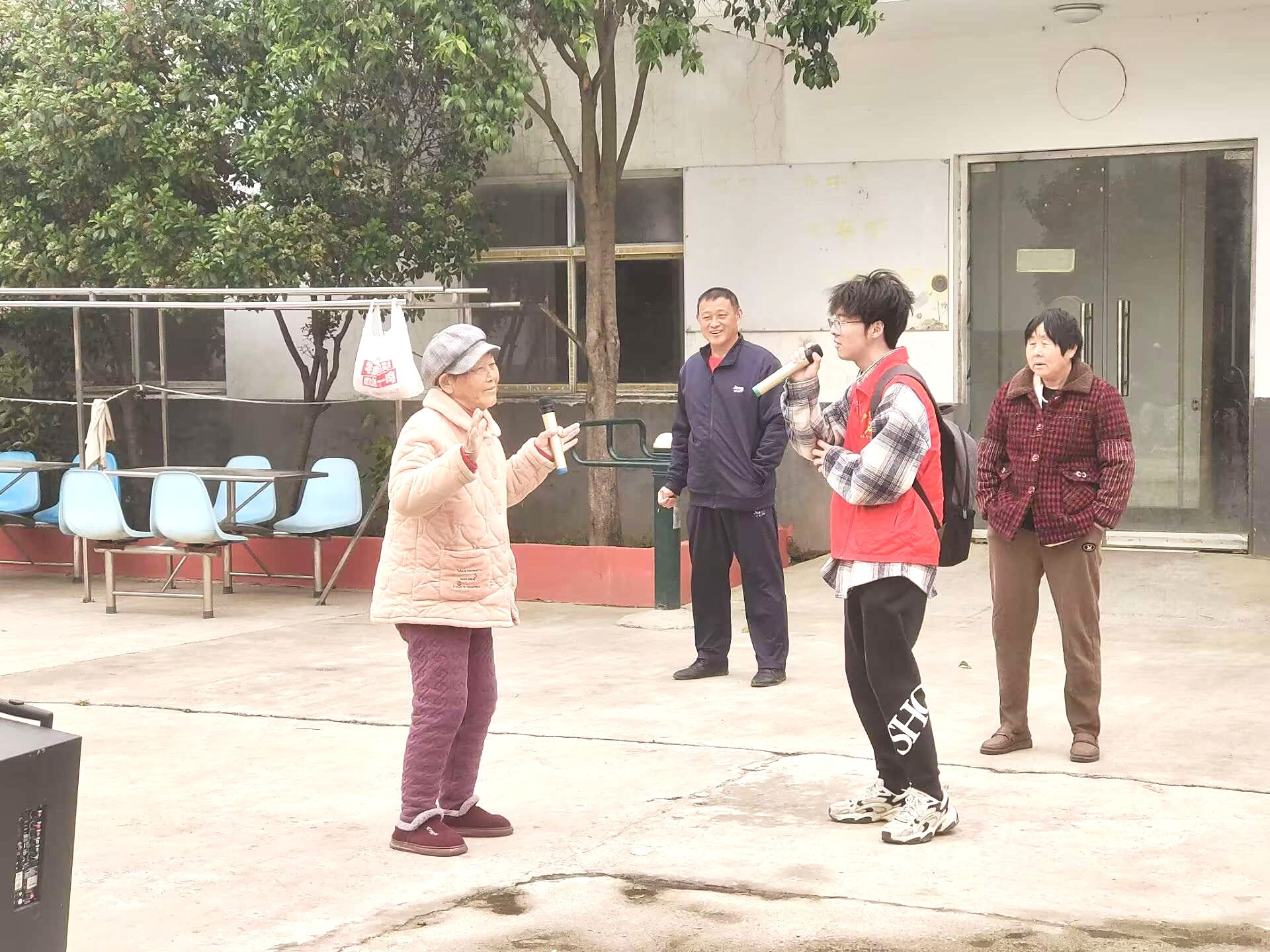 午餐后,志愿者们为老人们带来了一场小型文艺演出。志愿者们以饱含深情的诗歌朗诵《岁月如歌》,带领老人们回忆往昔岁月;用充满活力的歌曲《当你老了》,诉说对老人的敬意。互动环节中,志愿者与老人们合唱《甜蜜蜜》《茉莉花》等经典老歌,大家手打着节拍,歌声与掌声交织,将现场气氛推向高潮。