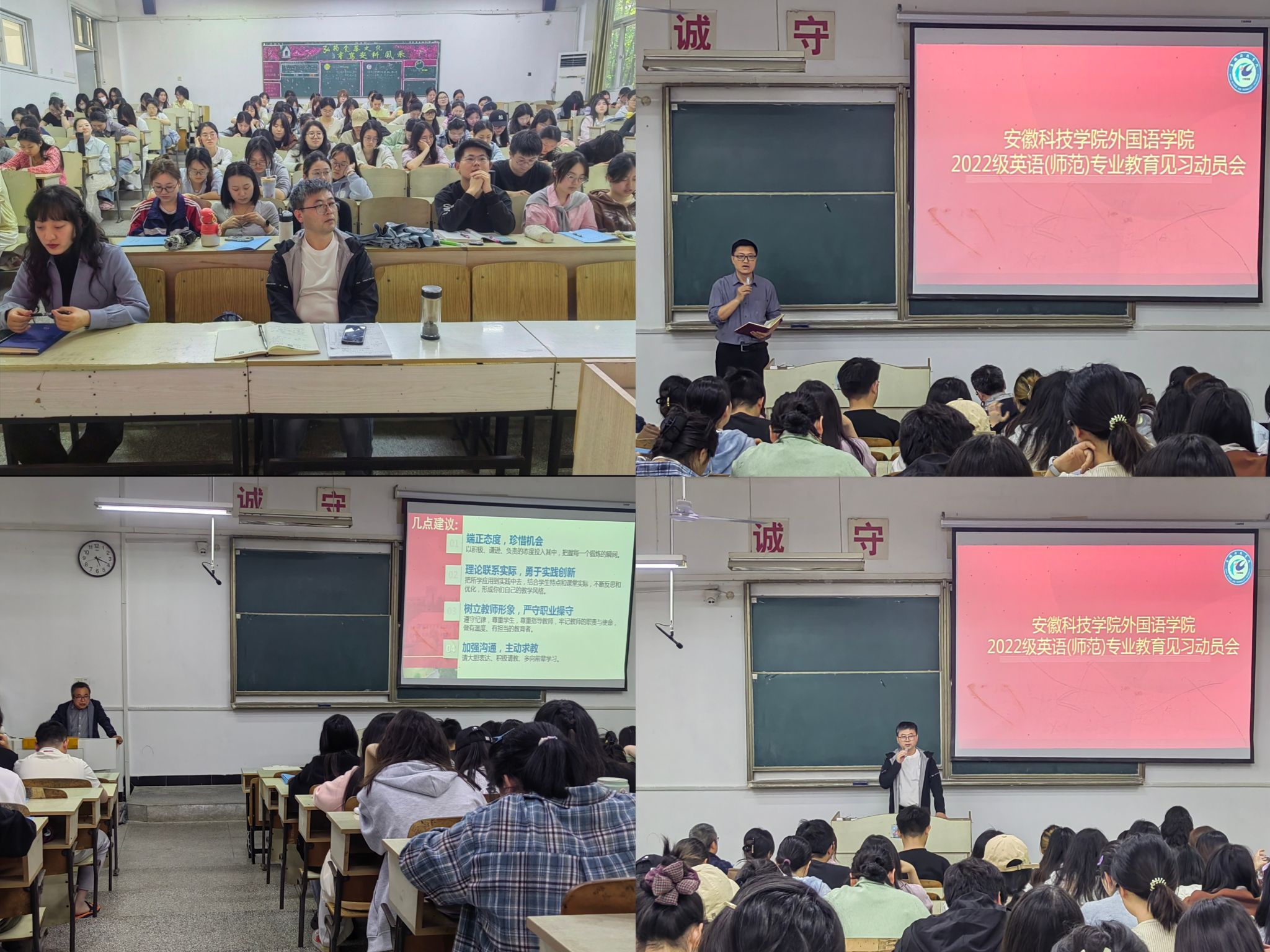 4月16日,外国语学院在求知楼A座105教室召开2022级英语(师范)专业教育见习动员会。2022级英语(师范)专业全体学生及外国语学院党政领导、相关指导教师出席会议。会议由学院副院长洪民主持。