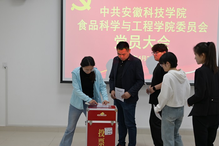 付光玺宣布,经过各基层党支部的民主推荐和学院党委充分酝酿,确定了代表候选人初步人选,并由学院党委对候选人初步人选进行审核把关、考察、公示,根据代表结构、多数党员意见提出代表候选人预备人选名单,校党委对代表候选人预备人选进行了审查,批复同意学院党委召开党员大会。会上,宣读了党委组织部《关于食品科学与工程学院党委出席中共安徽科技学院第四次代表大会代表候选人的批复》,介绍了候选人基本情况,通过了《食品科学与工程学院党委党员大会选举出席中共安徽科技学院第四次代表大会代表选举方法(草案)》,通过监票人、计票人名单。