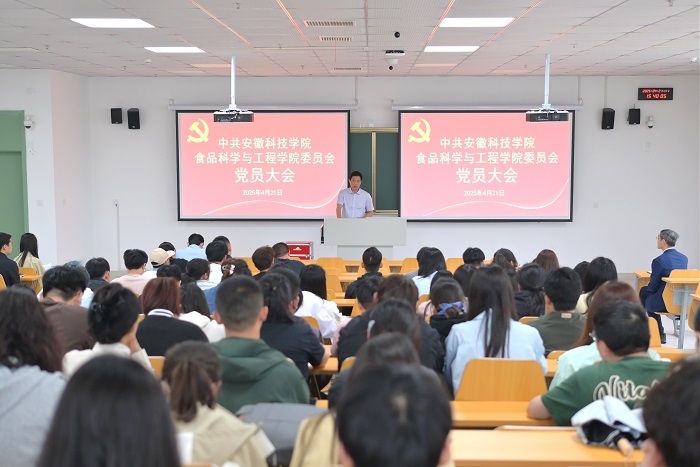 4月21日下午,食品科学与工程学院在阶梯教室101召开全体党员大会。会议由学院党委书记付光玺主持。