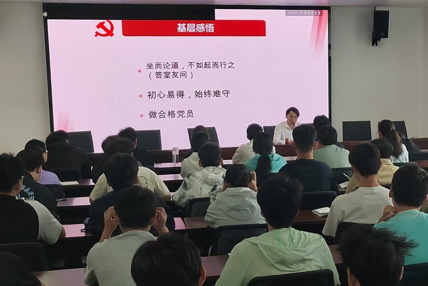 党课伊始,白敬远以“追溯红色记忆,传承革命精神”为切入点,用一个个生动的历史故事、一组组珍贵的数据,展现了中国共产党在不同历史时期为国家和民族所做出的伟大贡献,结合自身的工作经历分享了在基层一线的工作感悟,讲述了自己在基层如何深入群众、服务群众,如何在实践中锻炼成长。入党积极分子要深刻理解“初心易得,始终难守”的道理,加强自我修养,自觉遵守纪律和规矩,廉洁自律,为早日成长为一名忠诚干净担当的合格党员打牢基础。他鼓励大家要勇于到基层一线去锻炼,在实践中积累经验、增长才干,用实际行动践行一名共产党员的责任和担当。