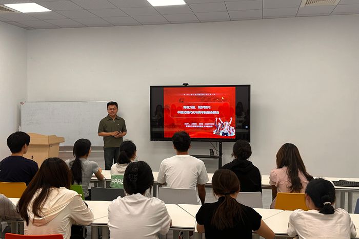 此次讲座主讲人为马克思主义学院教师王继涛,他以“青春力量,筑梦复兴”为主题,首先向大家讲述了实现现代化是一个世界性潮流,以及现代化概念的基本内涵;其次,围绕“什么是中国式现代化”讲述了中国式现代化的生动实践,引导大家深刻认识中国式现代化的丰富内涵;最后,围绕“现代化的青年力量”,引导广大青年学生要拥抱新机遇,无畏新挑战,坚定理想信念,勇挑重担,在中国式现代化建设中书写属于自己的青春华章。