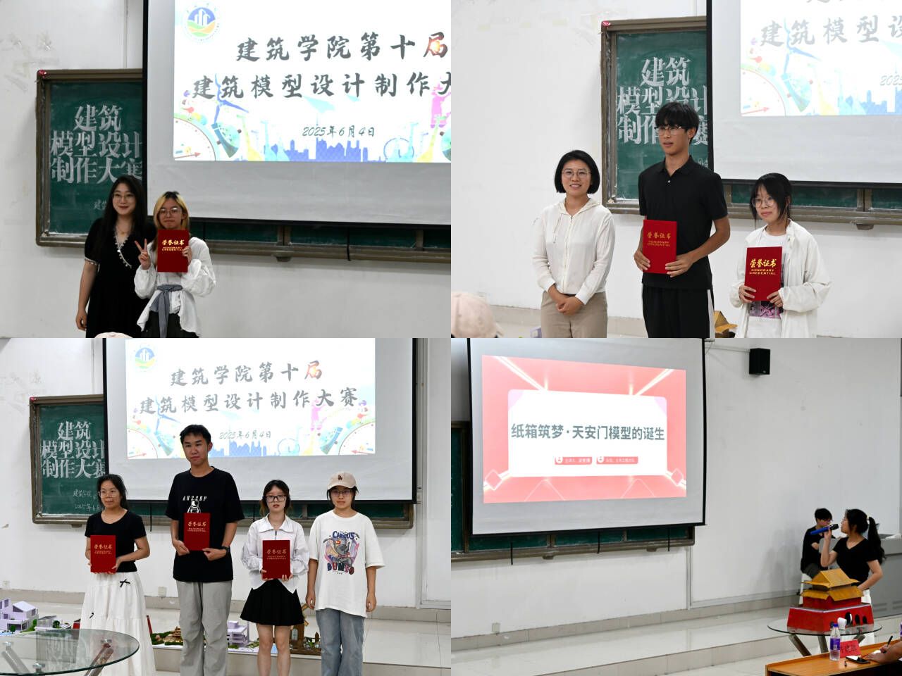 本次大赛以“绿色建筑 筑梦人生” 为主题,聚焦绿色环保理念,鼓励学生将低碳设计、可循环材料与职业理想融入模型创作。经线上方案评审+线下模型初评,共有6支队伍晋级决赛。决赛分为“选手自主演讲”和“评委点评”两个环节。各团队以PPT汇报形式,展现了建筑模型的绿色主题以及制作细节,评委老师从“绿色理念新颖性”“材料应用环保性”“模型制作精细度”“汇报流畅度”“建筑生态功能合理性” 等多维度,对作品进行客观评价与综合打分。