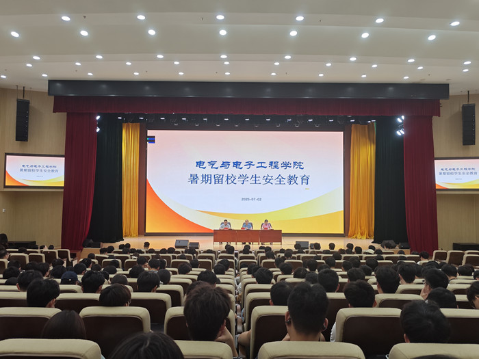 7月2日下午,电气与电子工程学院在龙湖校区东附楼报告厅举行2025年暑期留校学生安全教育,学院党委副书记尚磊出席会议并讲话,全体辅导员及留校学生参加了会议,会议由党政办公室主任王延丽主持。