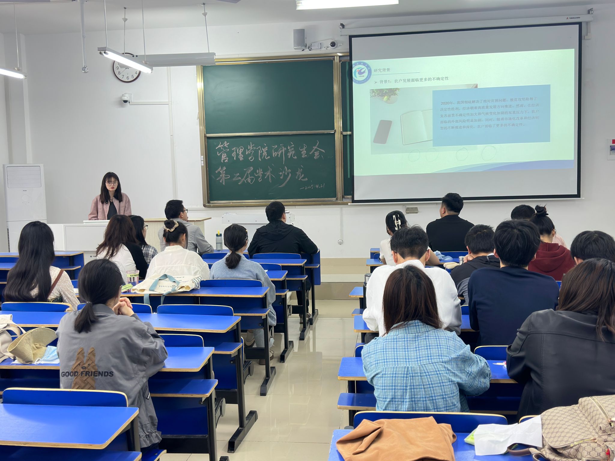 4月21日上午,管理学院在尚行楼C207开展管理学院研究生会第二届第一期研究生学术沙龙活动。活动邀请农业管理专业2023级李治云、王子微同学分享科研经验和技巧,农业管理领域2024级全体在校研究生参加。