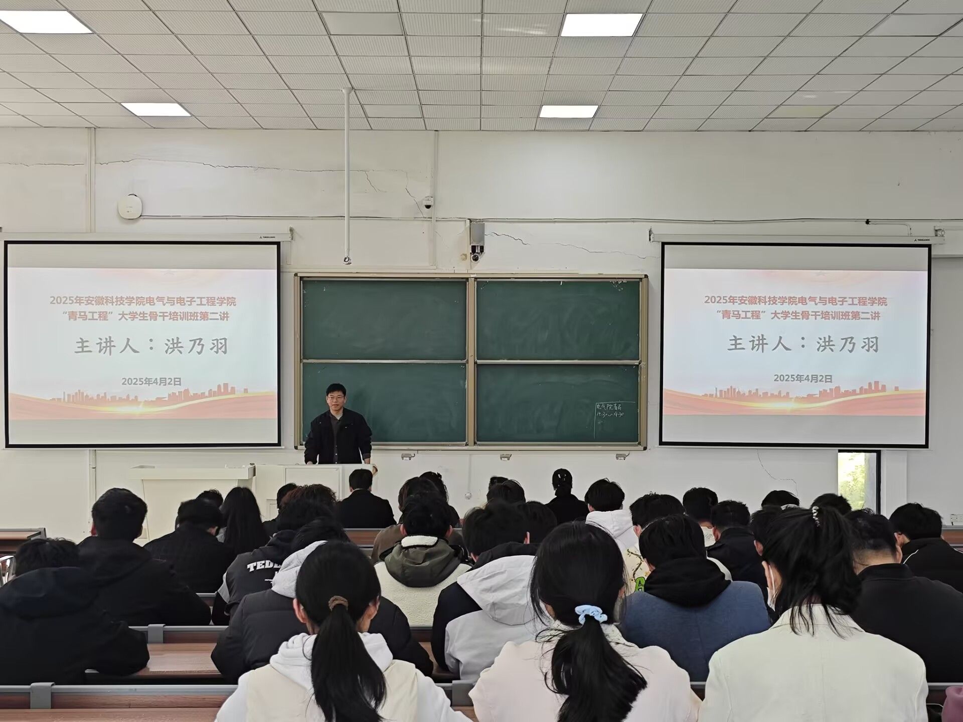 4月2日下午,电气与电子工程学院“青年马克思主义者培养工程”第二讲开讲。本次培训由学院团委副书记洪乃羽主讲,青马工程培训班全体学员参加。