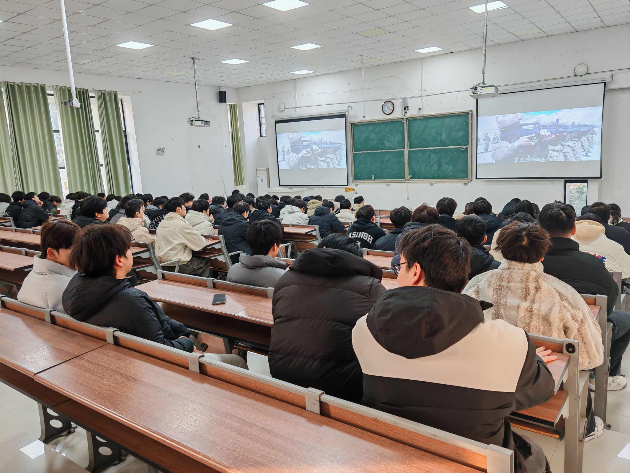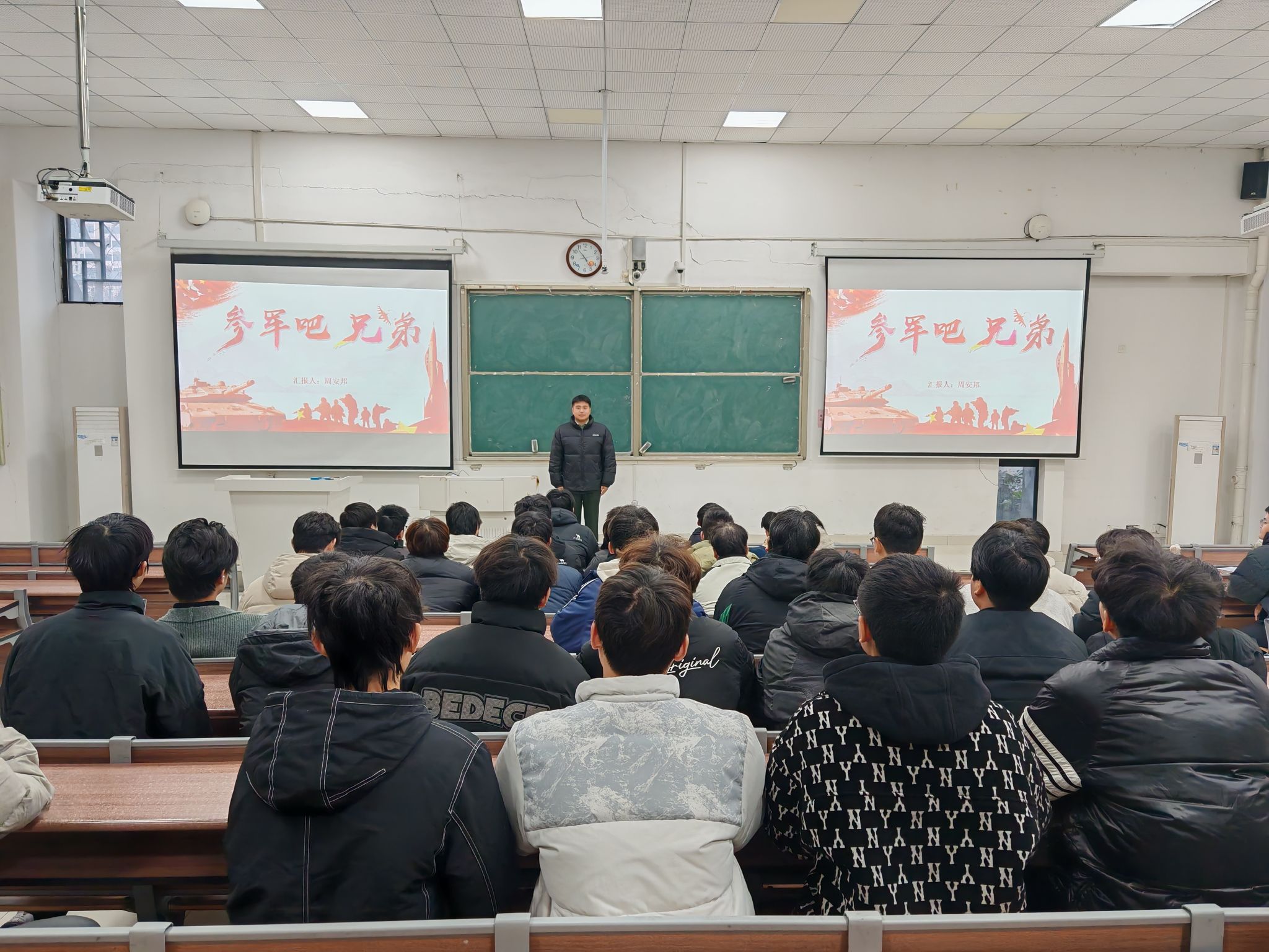 主题班会凝聚共识,厚植家国情怀。12月1日至10日,全院各班级“淬火青春 砺剑报国”为主题召开班会。辅导员通过播放应征入伍宣传片、解读最新政策文件、组织讨论交流等形式,引导学生深刻认识参军入伍对个人成长和国家发展的重要意义。