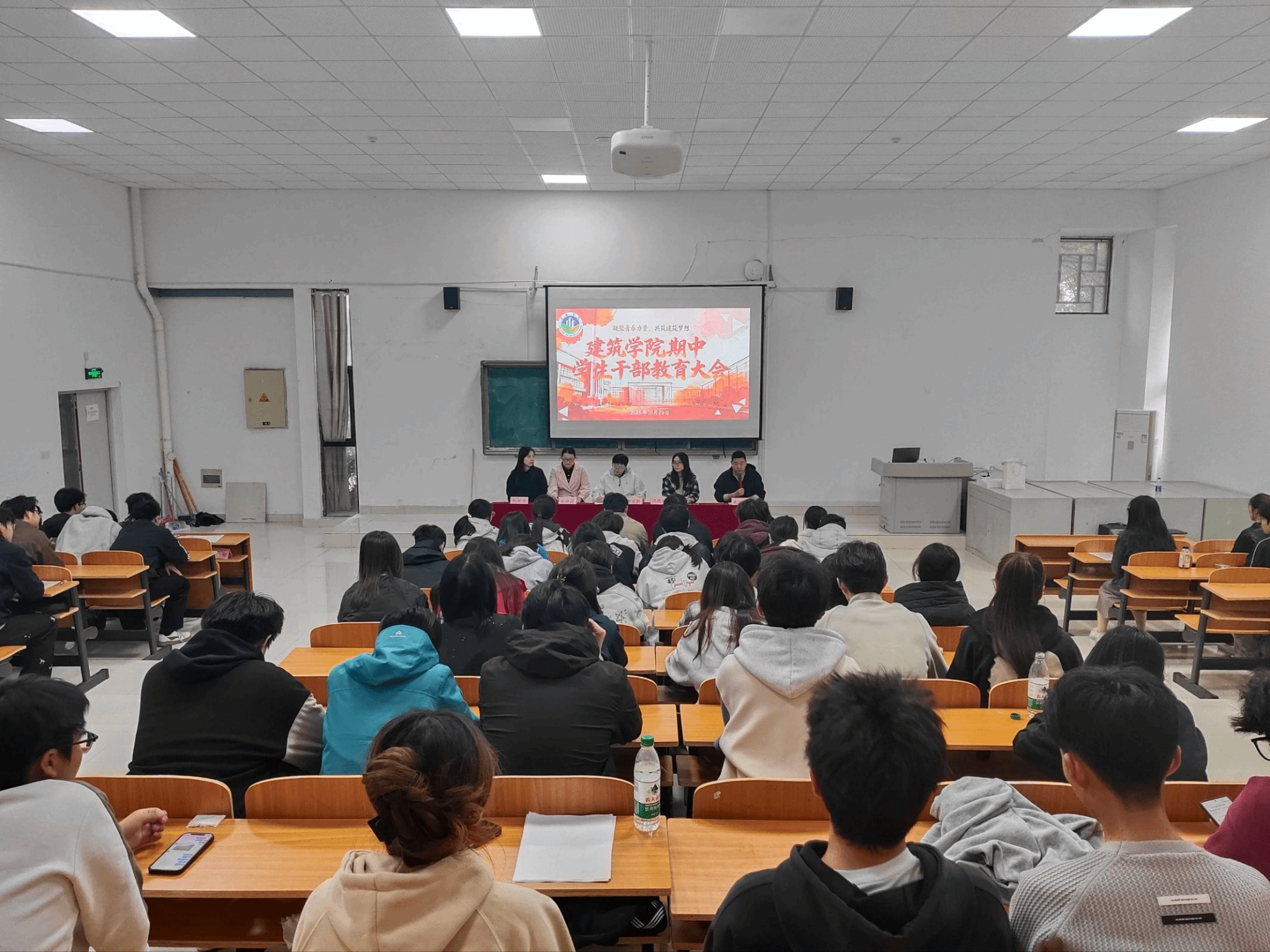 为加强学生干部教育,强化学生干部作用,10月29日下午,建筑学院在敏行楼C102召开期中学生干部教育大会。学院党委副书记谢宜勤,全体辅导员,各班级主要学生干部、学生组织负责人参会。会议由辅导员武辉主持。
