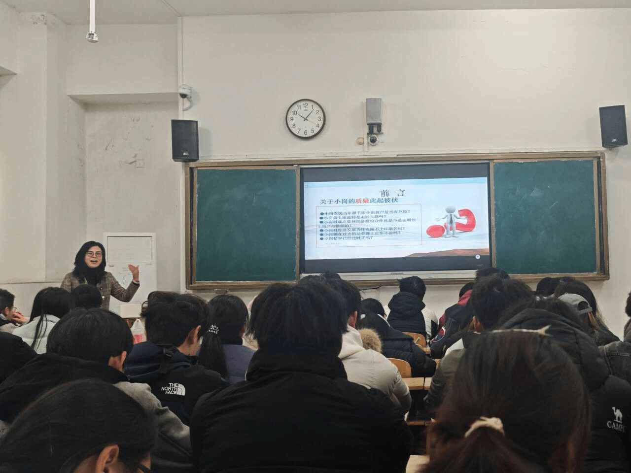 授课中,高君以“改革创新 敢为人先——小岗精神内涵及现实启示”为主题,按照“小岗精神”的历史追溯、精神内涵、现实启示的脉络,系统梳理了小岗村“大包干”从破冰之举到燎原之势的发展历程。通过追述彼时农村发展的困境与农民求变的迫切需求,阐释了“小岗精神”对于安徽省乃至全国的改革开放,都具有十分重要的时代意义和历史意义,是展示我国农业、农村和农民面貌的一个窗口,也是我国农村政策的奠基石,这是一笔宝贵的精神财富。为全院师生带来了一场兼具理论深度与实践温度的思想盛宴。