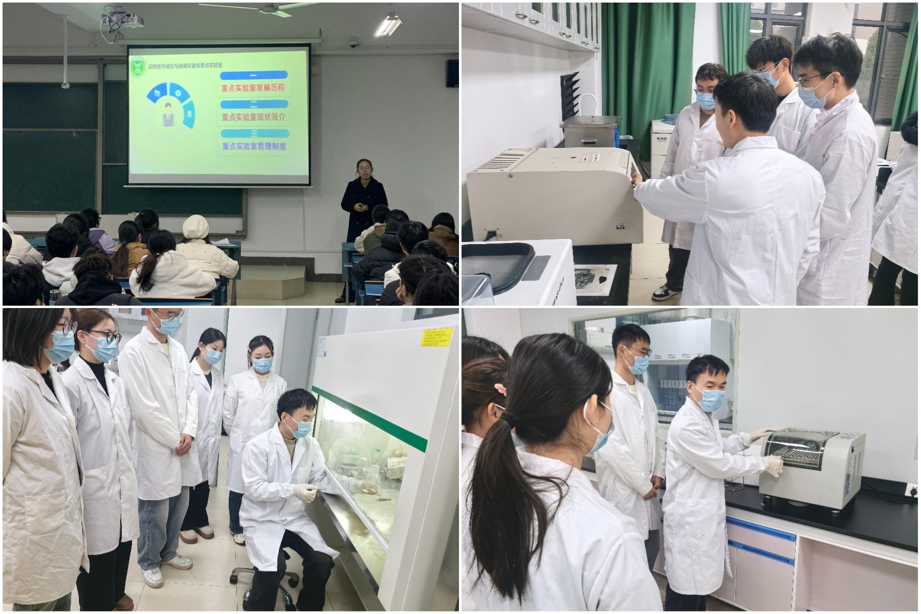 为切实提升学生的实验室安全意识与应急处置能力,从源头上防范化解实验室安全风险,11月18日至28日,安徽省动物营养调控与健康重点实验室组织开展2025年度实验室安全准入培训与考核,实验室副主任任曼和实验管理教师靳蒙蒙、杨海滨、冯星担任培训教师,培训覆盖41名研究生及37名本科生,目前已圆满完成各项培训任务,全员通过考核。