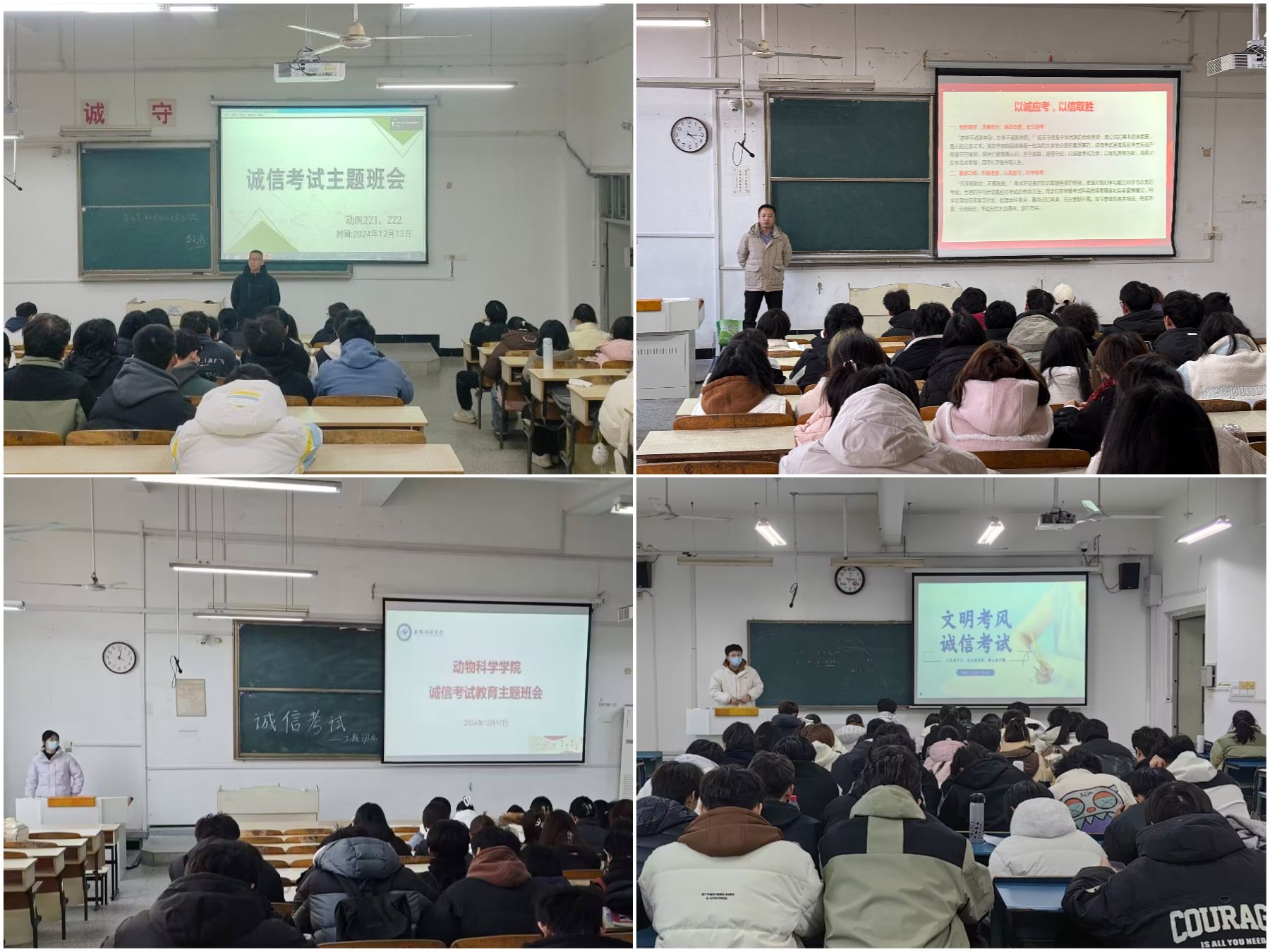 为加强学生诚信教育,严肃考风考纪,12月12日至19日,动物科学学院各班级召开诚信考试主题班会,并组织各班学生签署《诚信考试承诺书》。
