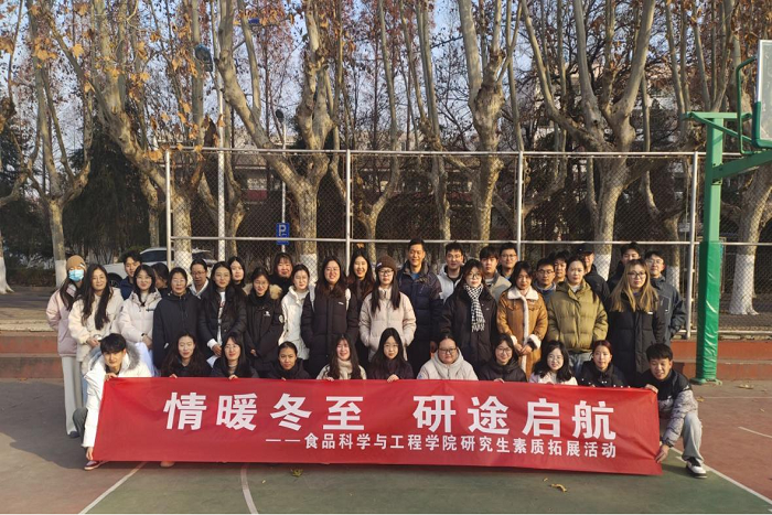 12月21日上午,食品科学与工程学院成功举办“情暖冬至,研途启航”研究生素质拓展活动,本次活动由食品科学与工程学院研究生会主办。学院党委书记付光玺,研究生辅导员李彤彤应邀出席本次活动。全体研究生共同参与。