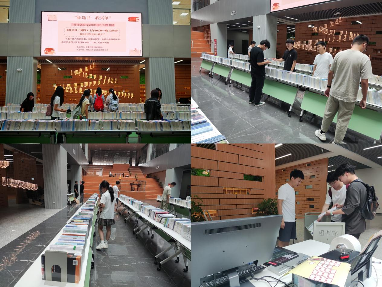 活动前期,湖北三新文化传媒有限公司向此次书展提供了2100余册科技、创新、文化、教育等类别的高质量图书。书展活动现场,琳琅满目的新书整齐排列,吸引了众多同学的目光。数据分析、人工智能、机器学习等相关图书在书展中广受欢迎。书展现场设置了图书加工点,对同学们选定的图书进行现场加工,仅需要十几分钟,同学们便可以通过自助借还机借到自己心仪的图书。
