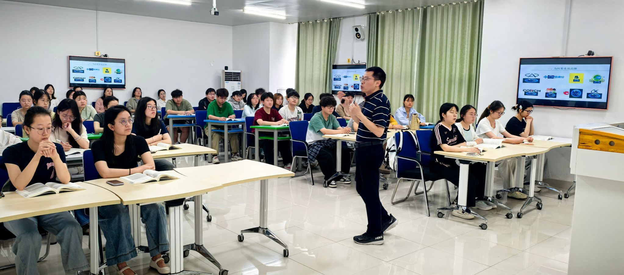 本次示范课以《市场营销学》中的品牌策略为核心内容,以“品牌与产品的辩证关系”为切入点,引导学生深入思考。通过国家、区域、企业、个人等品牌类型的讲解,并融入思政元素:“发展新质生产力,打造更多叫得响的品牌”,将思政教育巧妙融入专业教学,引导学生树立正确的品牌观,将个人发展与国家战略紧密结合。在教学过程中,充分运用计量分析的统计方法,以及图表等表现形式,将品牌的发展等知识点形象化呈现。