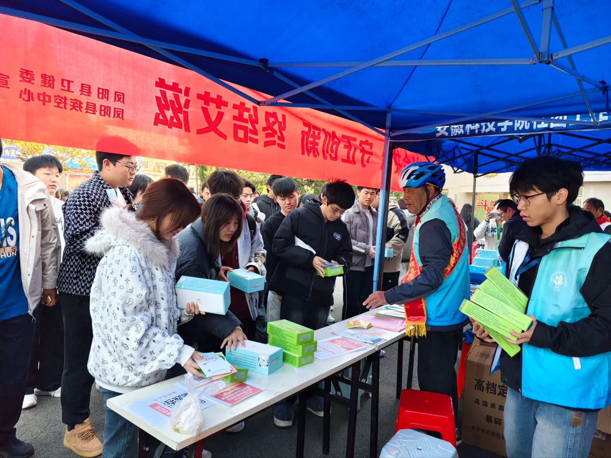 凤阳校区五四广场的活动同样精彩纷呈,共有375名师生加入其中。“社会共治,守正创新,终结艾滋”的横幅前签名者络绎不绝。本次活动的一大亮点是特邀凤阳县疾控中心专家与凤阳县红丝带骑行队亲临现场。专家们通过图文并茂的演示,系统讲解了结核病呼吸道防控要点、艾滋病暴露前后预防等核心知识,专业而权威的解读加深了师生们的理解。红丝带骑行队成员的现身说法与活力展示,让健康宣传更具感染力与亲和力。