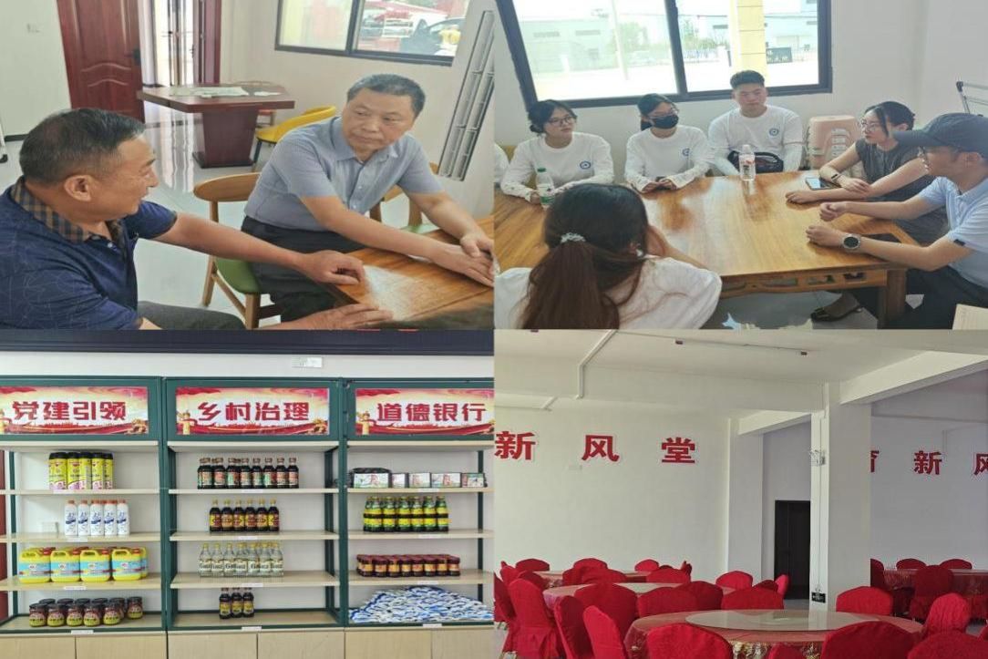 8月5日上午。社会实践团队来到新安镇李庙村,重点调研“白事三不”实践模式。我们参观了李庙村党群服务中心、新风堂、老年食堂等,与村党支部书记和部分村民进行了座谈。了解到该村党支部积极利用当地村贤资源,组建红白理事会,坚持三十多年“不收礼金、不摆排场、不扰邻里”的良好传统,在村庄之间横向联合,带动示范。村党支部还设置了“积分超市”,村民参与人居环境卫生整治、矛盾纠纷调解和志愿服务等乡村治理活动,均可获得积分进行兑换物品,激发村民参与乡村治理的主人翁意识。这些都让我们真切体会到移风易俗理念在基层的扎实落地。