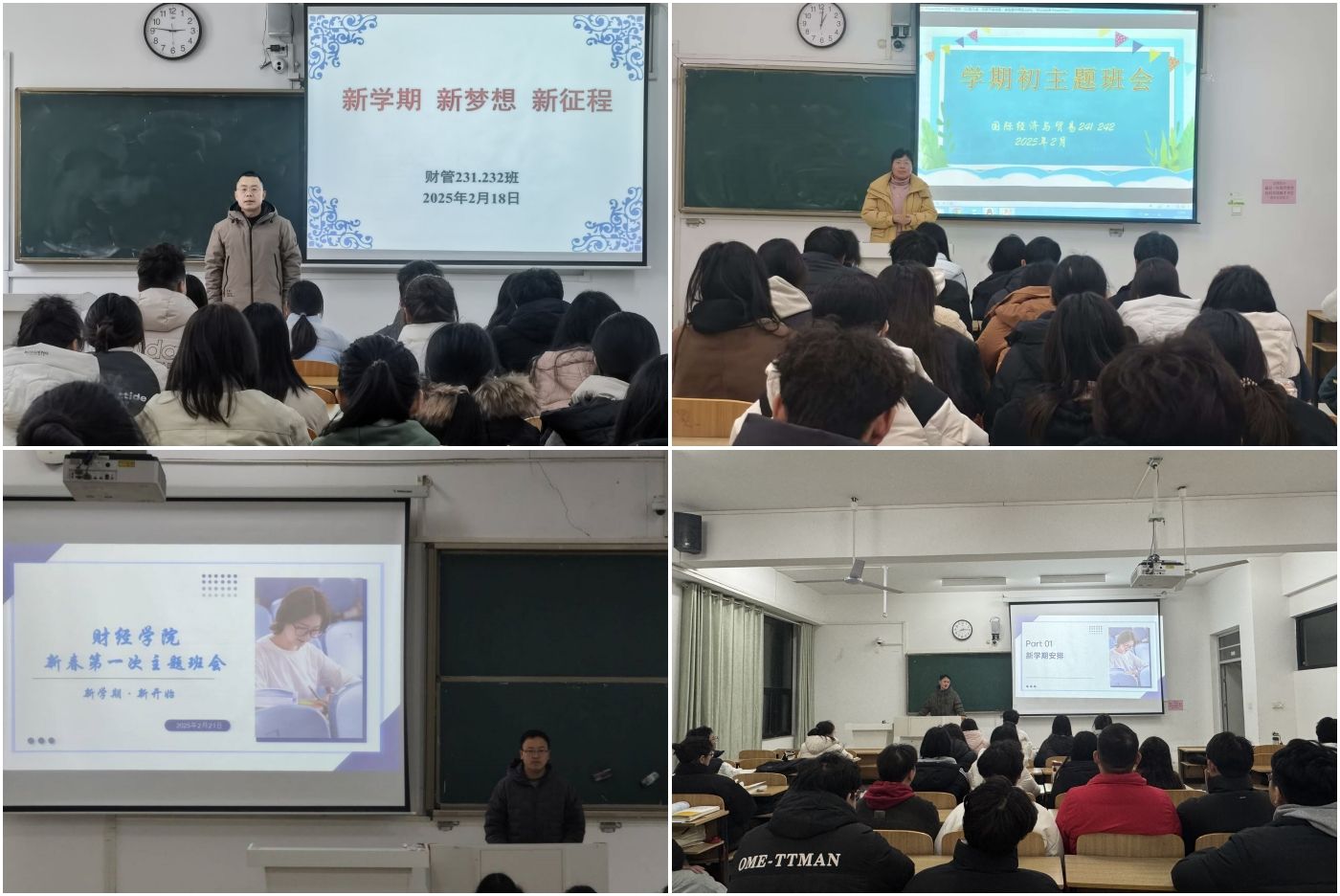 为引导学生迅速适应新学期节奏,明确学业目标,营造奋发向上的学习氛围,2月16日至21日,财经学院以“新学期 新梦想 新征程”为主题,组织各班级召开新学期第一次班会。