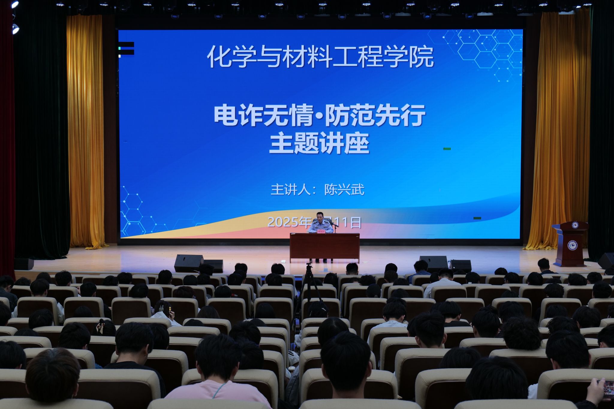 电诈无情﹒防范先行——化学与材料工程学院“警校联动”举办防电诈安全教育专题讲座