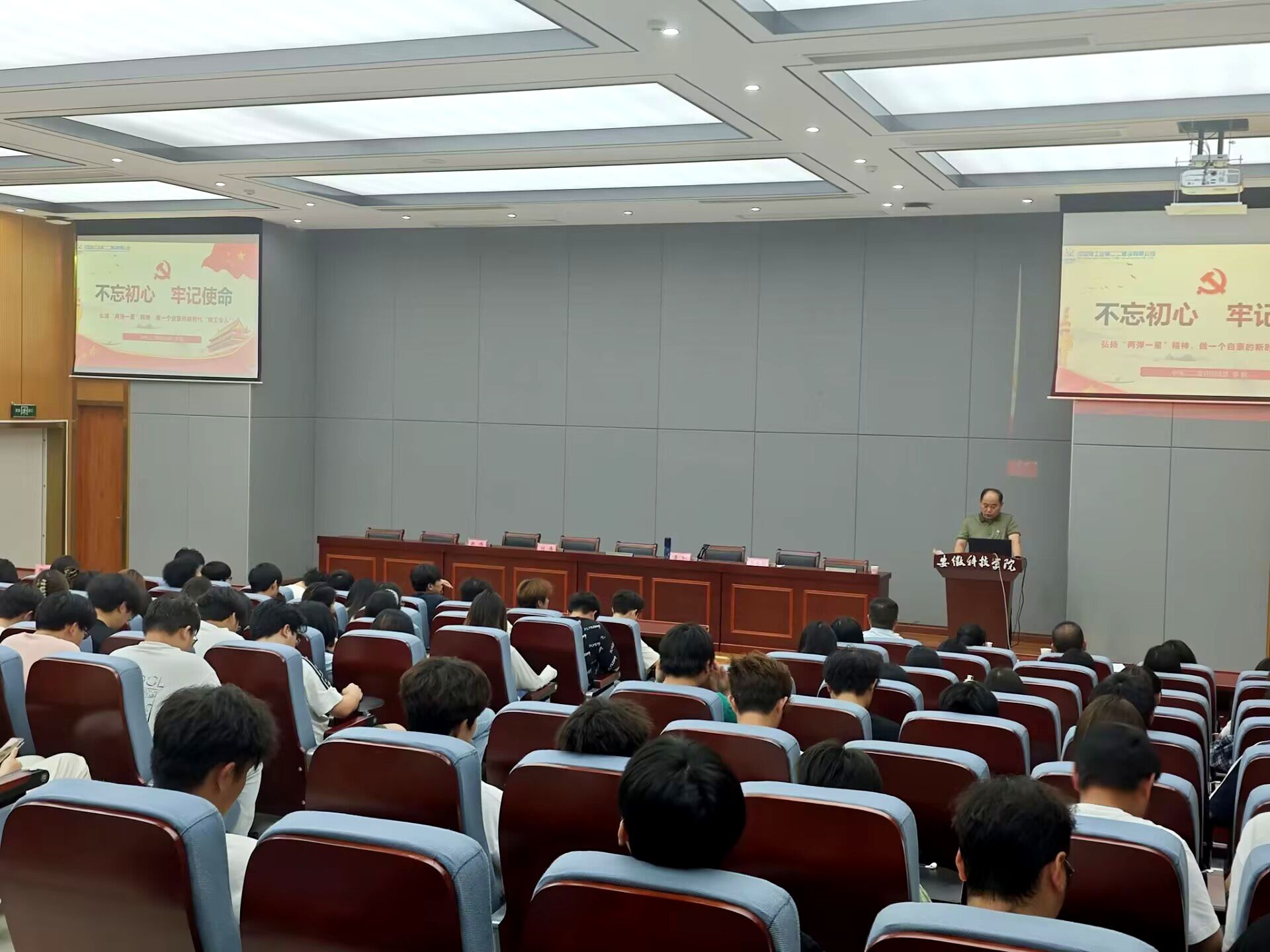 为传承红色基因、赓续共产党人的精神血脉,大力弘扬“两弹一星”精神,6月11日下午,中国核工业第二二建设有限公司宣讲团成员、高级政工师李枫到管理学院作弘扬“两弹一星”精神专场宣讲报告,报告会在龙湖校区敏行楼B报告厅举行。中核二二实业公司副总经理刘伟、蚌埠管理部主任赵伟,150余名学生代表参加报告会,报告会由学院党委副书记陶漫主持。
