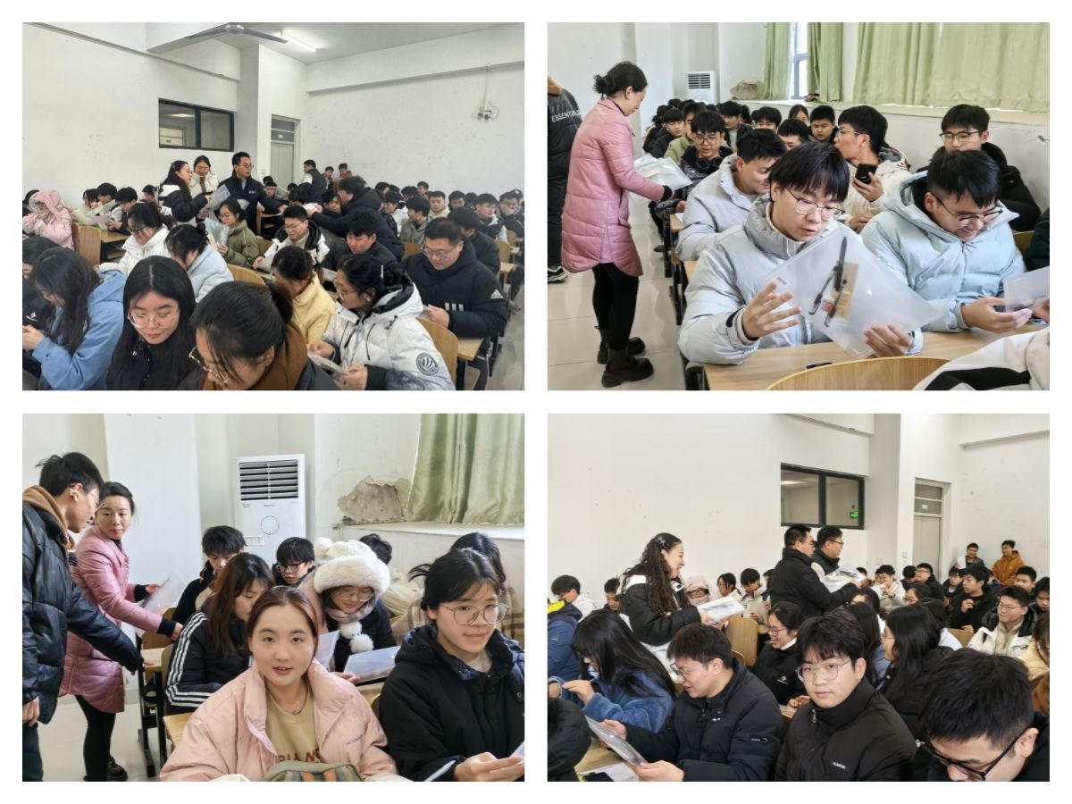 尚磊对全体考研学生表达了深切的关怀与期望,他指出,考研不仅是对专业知识的深度探索,更是对个人意志与毅力的极大考验。他鼓励同学们,在考研的最后冲刺阶段,要坚定信心,做好心理调整。学院将一如既往地为大家提供全方位的支持和帮助,从学习资源、心理辅导到生活服务,都会给予最大程度的保障。希望大家诚信考试,保持诚实守信的品质,珍惜考试机会。大会的最后,各毕业班辅导员为考研学子发放了助考文具,这些文具代表着学院对同学们的关怀和支持,希望它们能在关键时刻为同学们带来好运和力量。