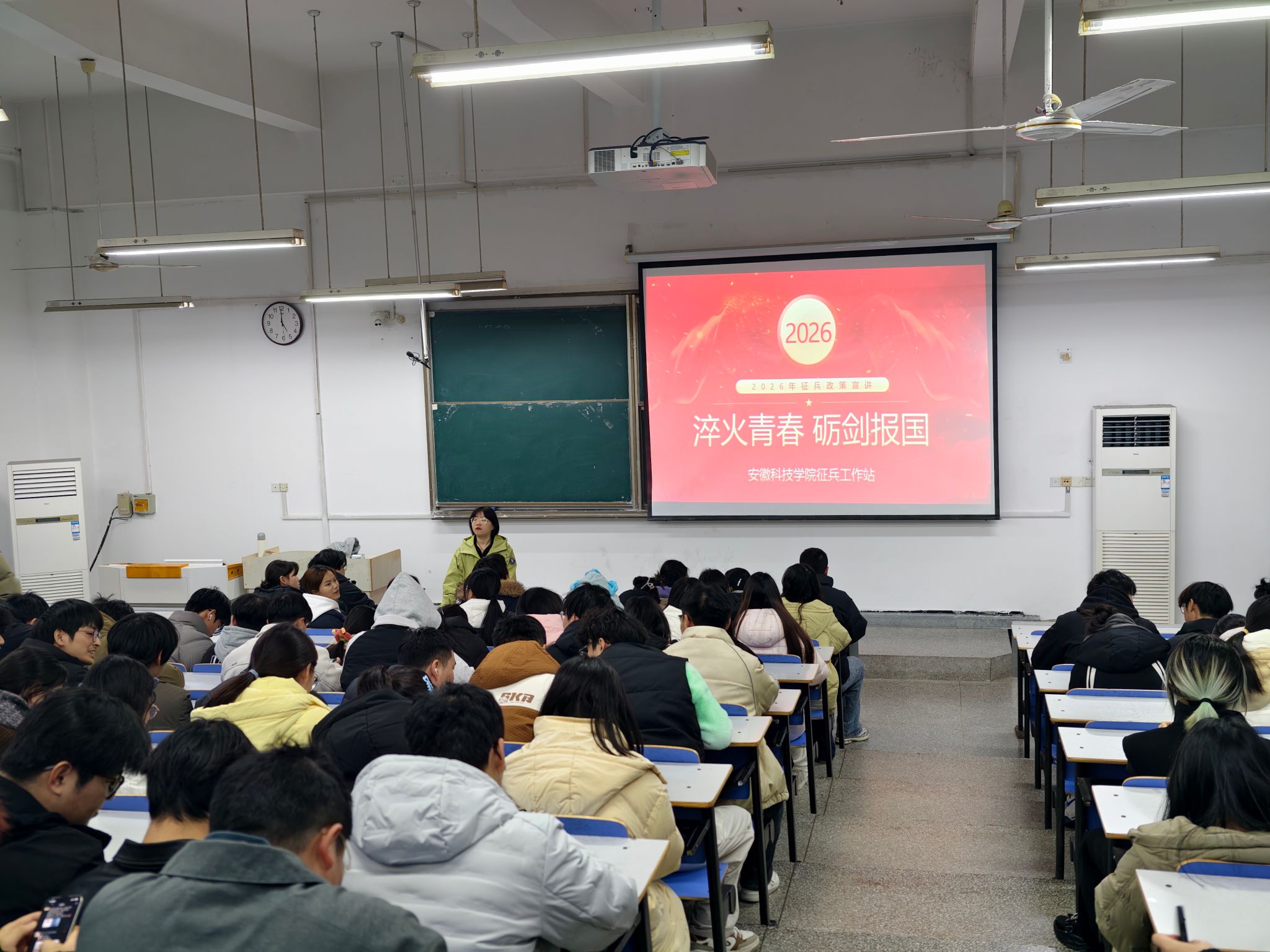 主题班会传政策,思想引领筑根基。农学院坚持以班级为单位,组织召开毕业班征兵宣传主题班会。会上,辅导员详细解读2026年征兵工作的时间节点、报名流程、征集条件、优待政策等重要内容,重点阐述学费补偿、升学优惠、就业扶持等政策保障,同时,结合最新政策变化,对学生普遍关注的入伍年龄、学历要求、体检标准等问题逐一解答。