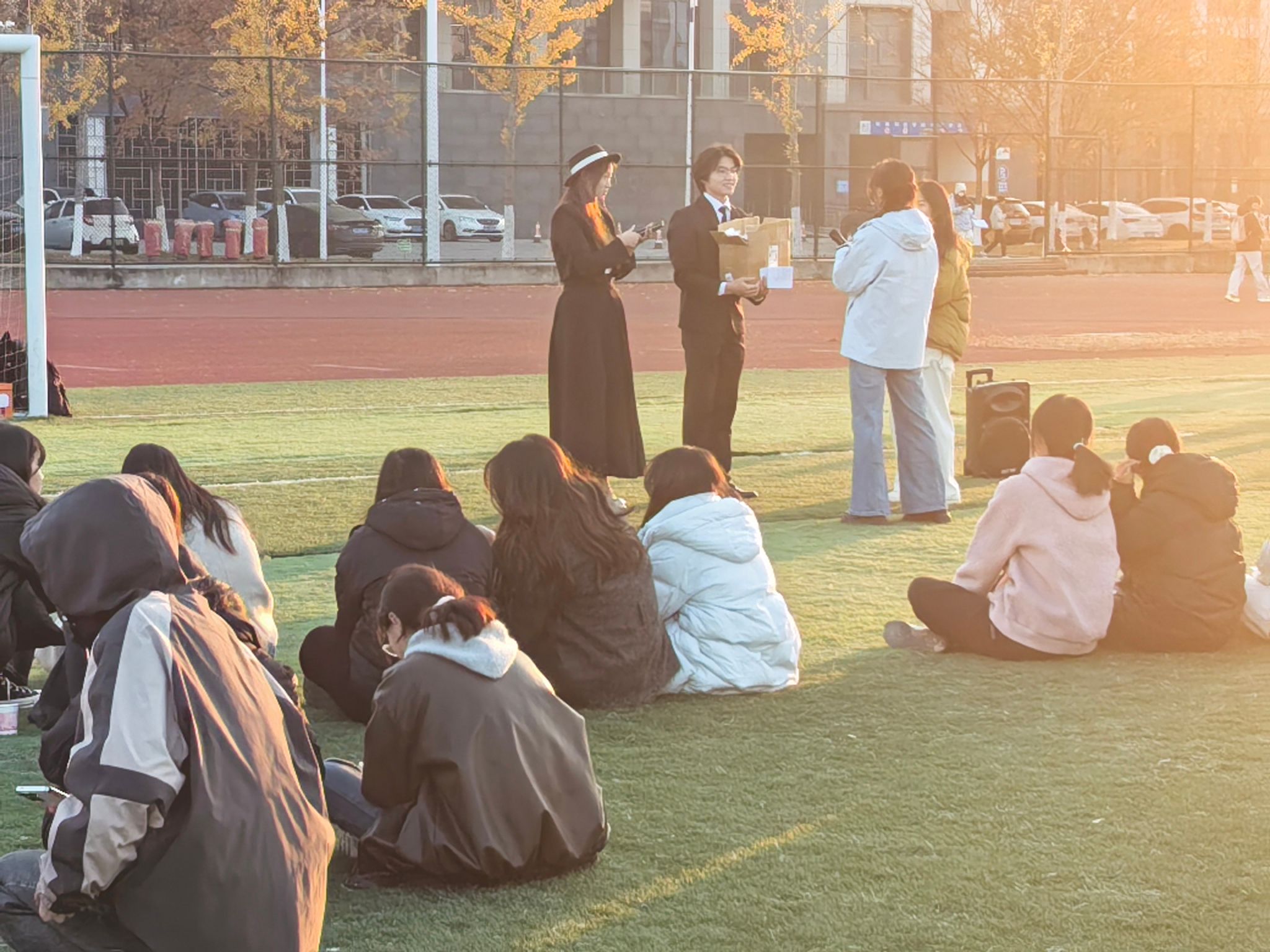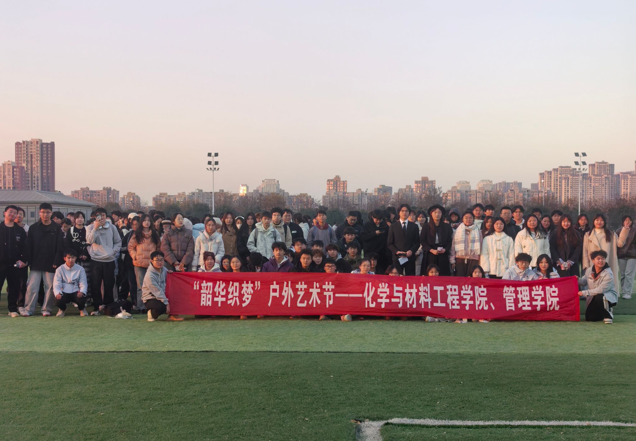 12月3日下午,化学与材料工程学院与管理学院联合举办的 “韶华织梦” 户外艺术节在龙湖校区顺利启幕。近两百名来自两学院的学子齐聚操场,以艺术为桥、以互动为媒,在暖冬余晖中绽放青春活力。