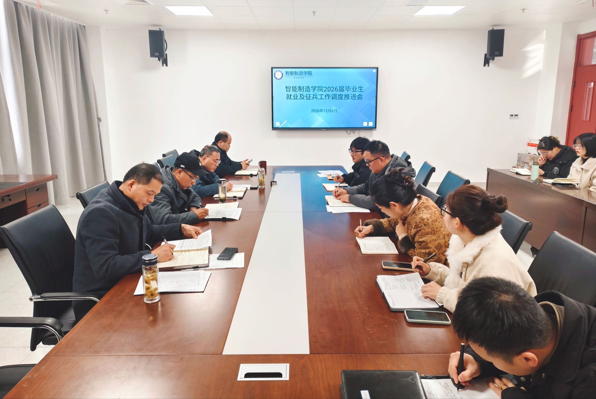 12月8日上午,智能制造学院在学院501会议室召开毕业生就业及征兵工作会议。学院党政领导、全体辅导员参加会议。