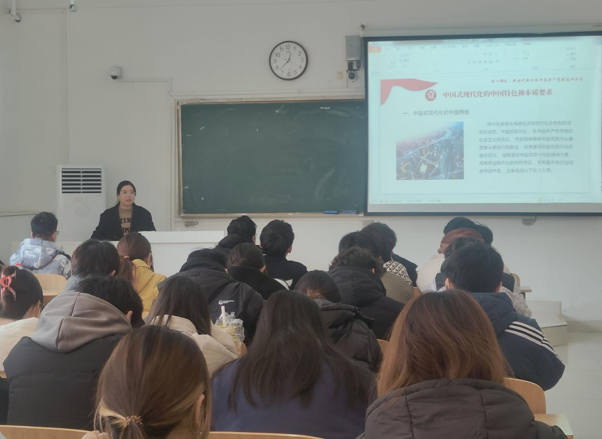 薛璐莎以我国现代化建设的历史进程为切入点,深入浅出地阐述了从新中国成立初期的工业化探索到改革开放后逐步确立现代化建设目标的曲折历程,通过丰富的历史资料和生动的案例,帮助同学们清晰地了解我国在不同历史阶段所面临的挑战与机遇。她分享了新时代青年在科技创新、乡村振兴、社会服务等领域勇于担当作为的先进典型事迹,生动地诠释了青年一代在社会主义现代化建设的浪潮中“大有可为、大有作为”,引导学生将个人理想融入国家发展大局,努力学习专业知识,锤炼综合素质,为全面建设社会主义现代化国家贡献青春、智慧和力量。