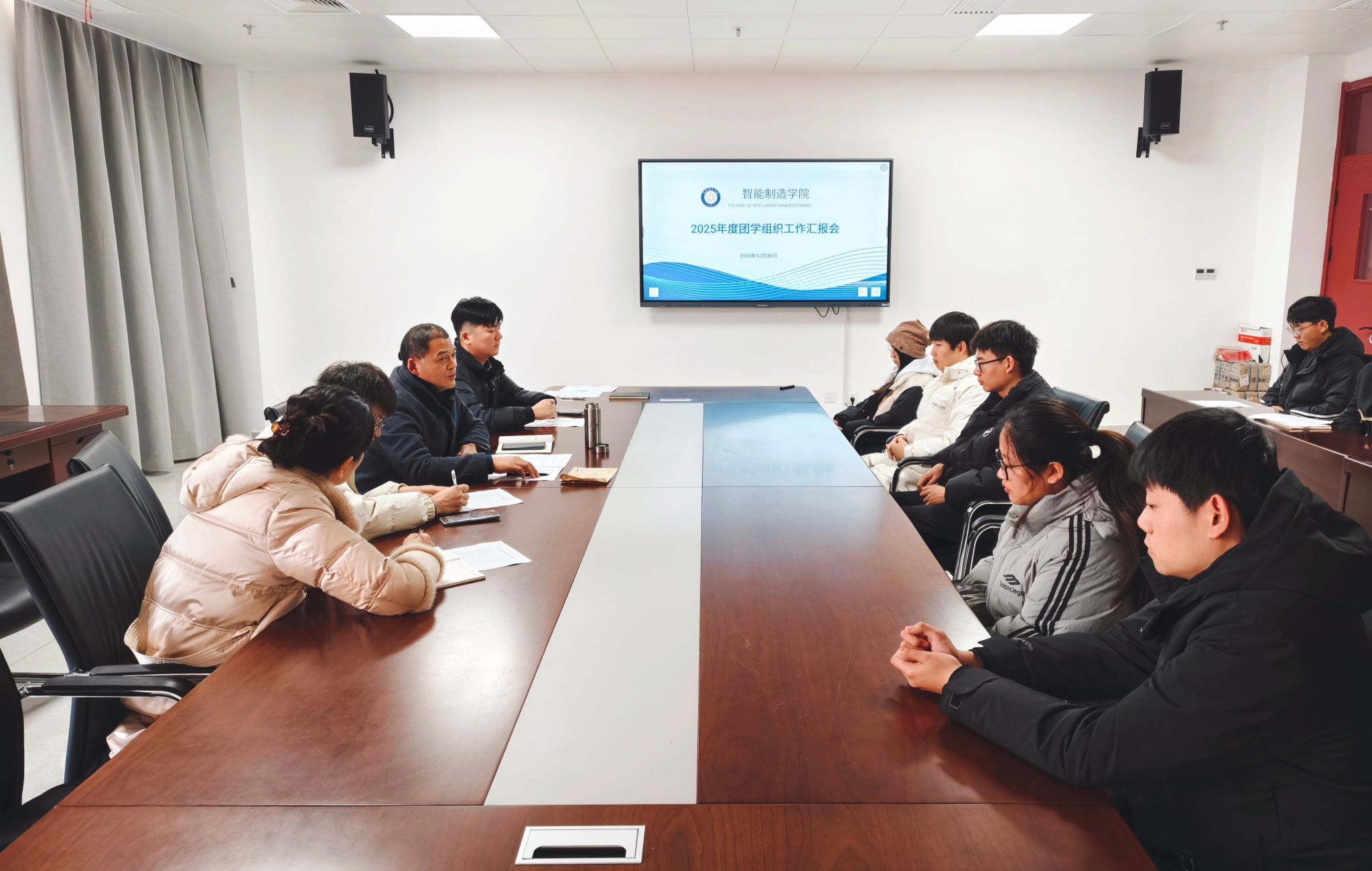 为全面总结团学工作成效,精准查摆问题不足,明确下阶段工作提升路径,12月30日下午,智能制造学院在学院501会议室召开2025年度团学组织工作汇报会。学院党委副书记张程,学院有关教师及9个团学组织部分负责人参加会议。
