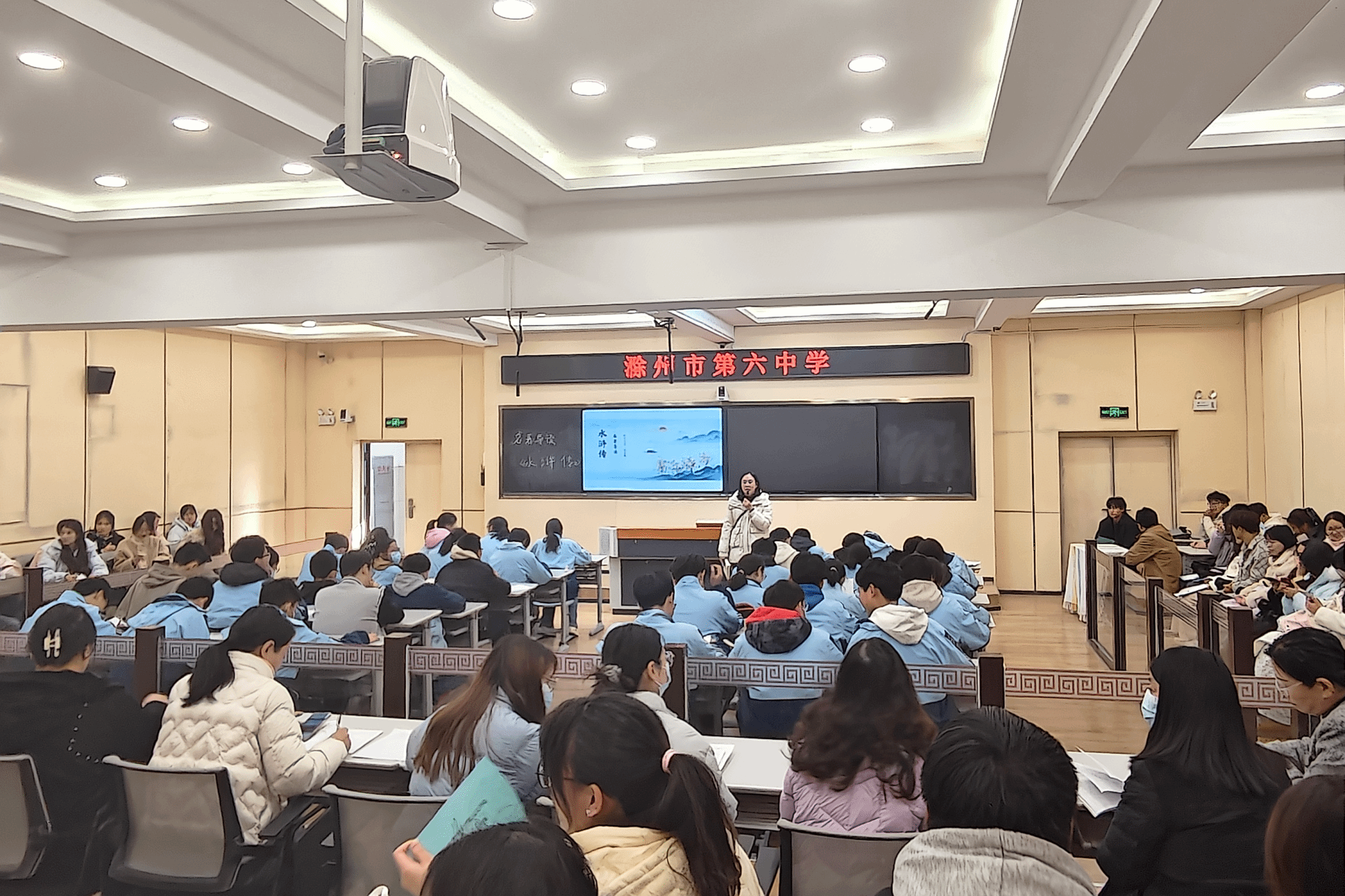 12月3日,2023级汉语言文学专业233班、234班学生前往滁州市第六中学,参加了以名著导读《水浒传》为主题的教学观摩活动。赵文丽老师以“结构观势法”为主线,系统梳理作品叙事脉络,并借助“精读跳读法”引导学生把握核心人物形象。课堂中穿插小组讨论、批注阅读、对比分析等多种教学方法,生动展示了名著教学的丰富策略与课堂实施的多元路径,为学生今后开展整本书阅读教学提供了宝贵借鉴。